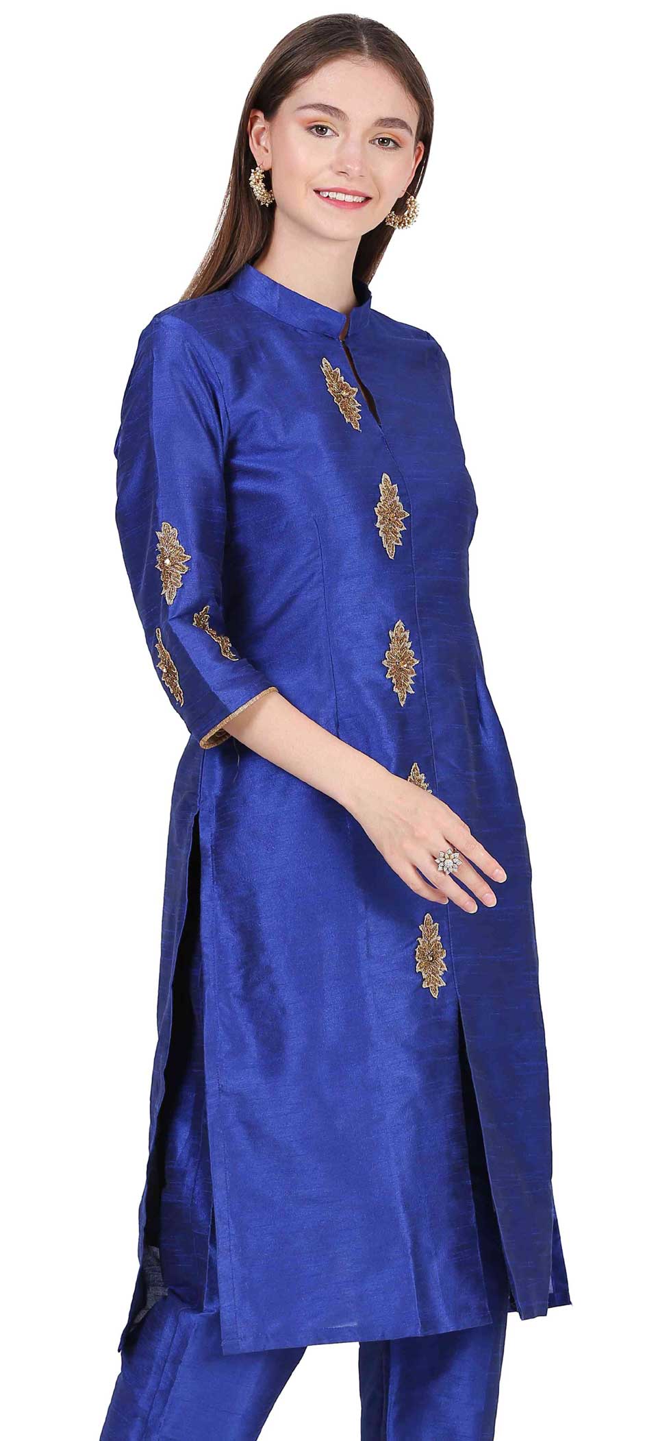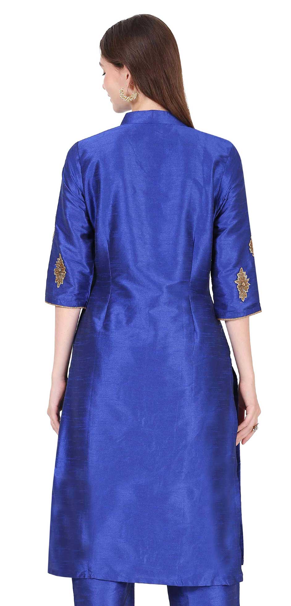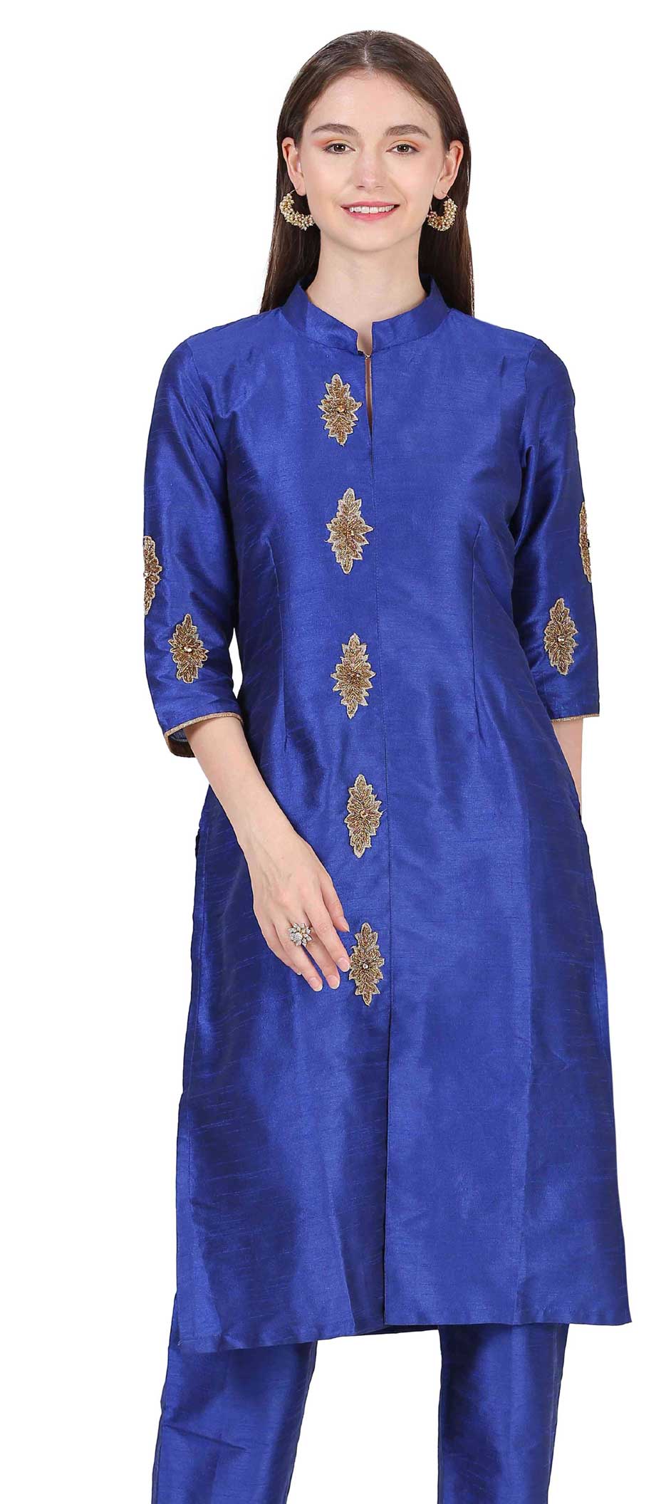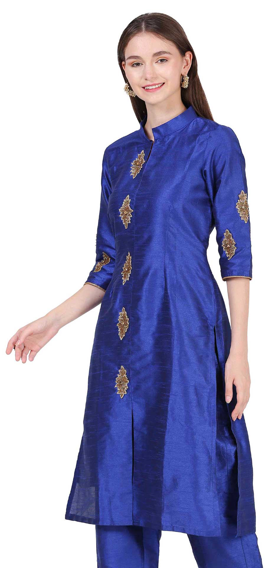 Taffeta Silk Casual Kurti in Blue with Thread work
