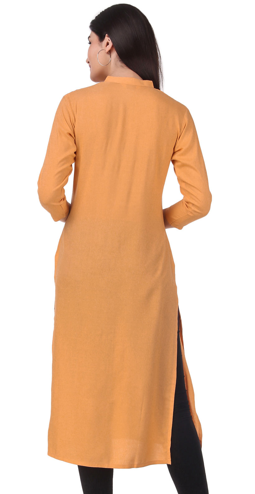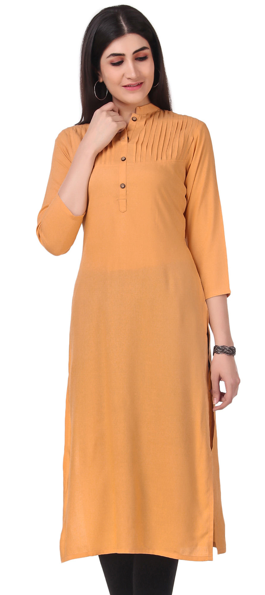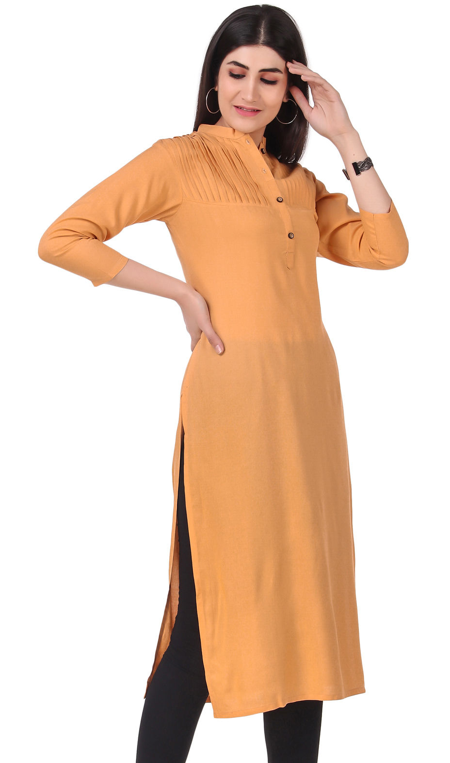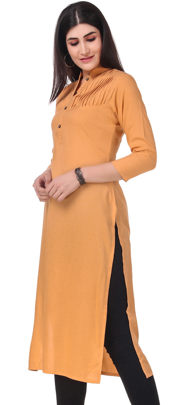 Beige and Brown color Kurti in Rayon fabric with Pleats work