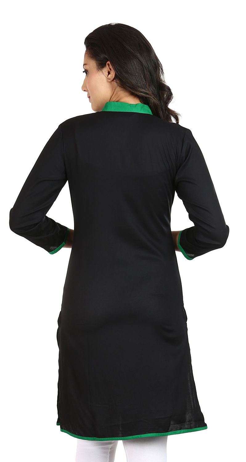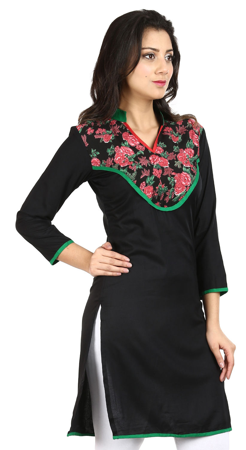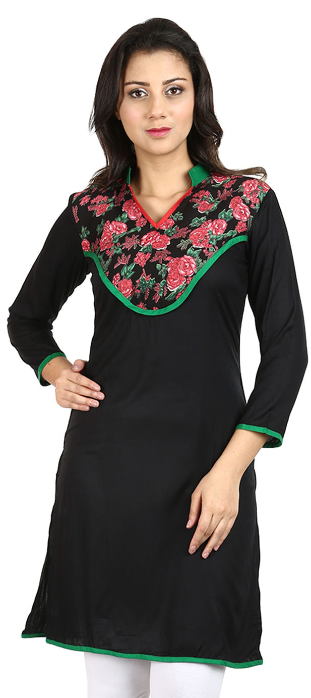 Black and Grey color Kurti in Rayon fabric with Printed work