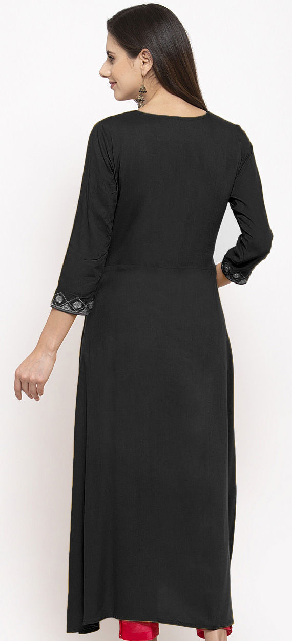 Rayon Casual Kurti in Black and Grey with Embroidered work