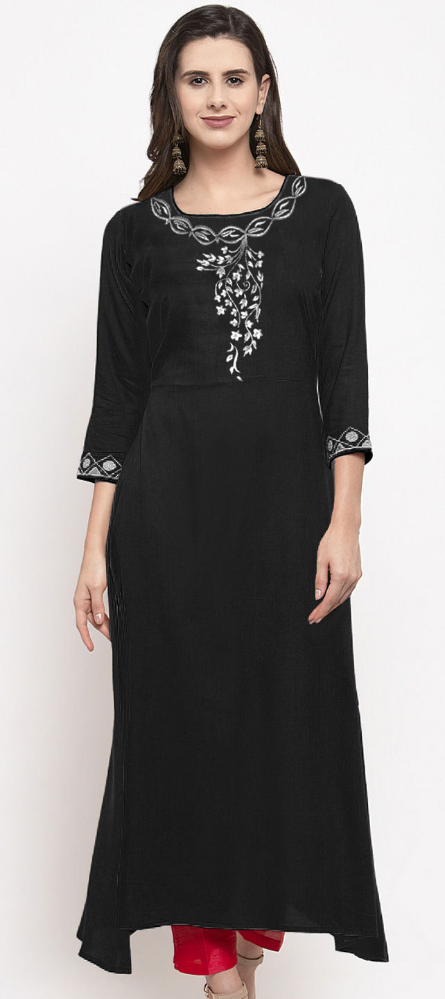 Black and Grey color Kurti in Rayon fabric with Embroidered, Thread work
