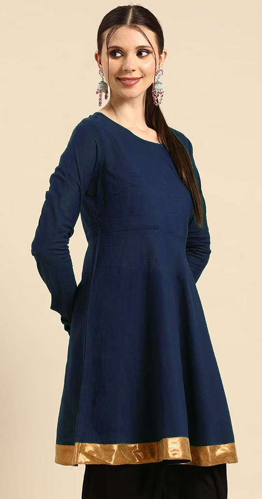 Blue color Kurti in Rayon fabric with Border work