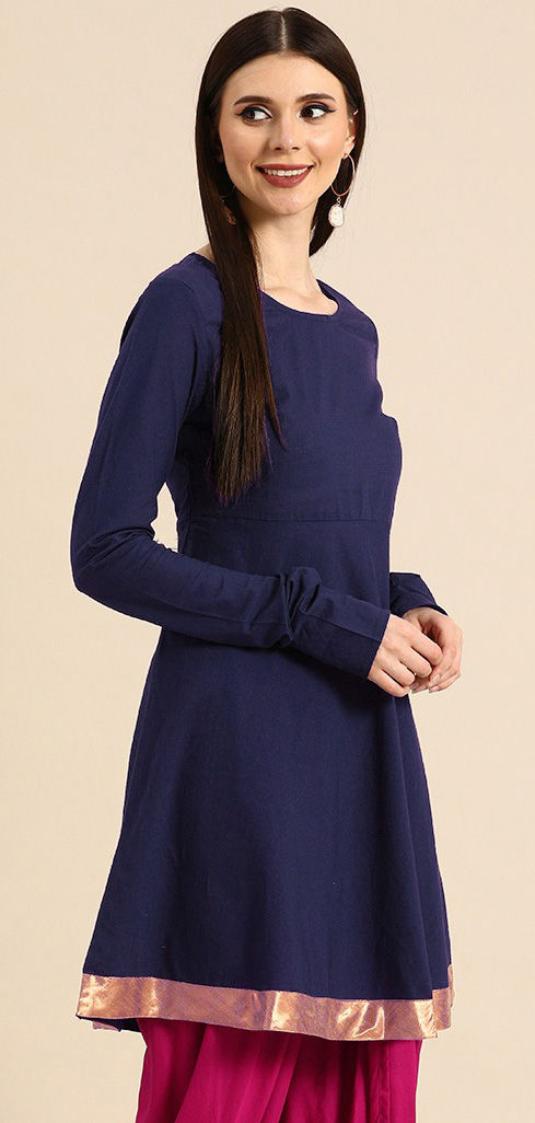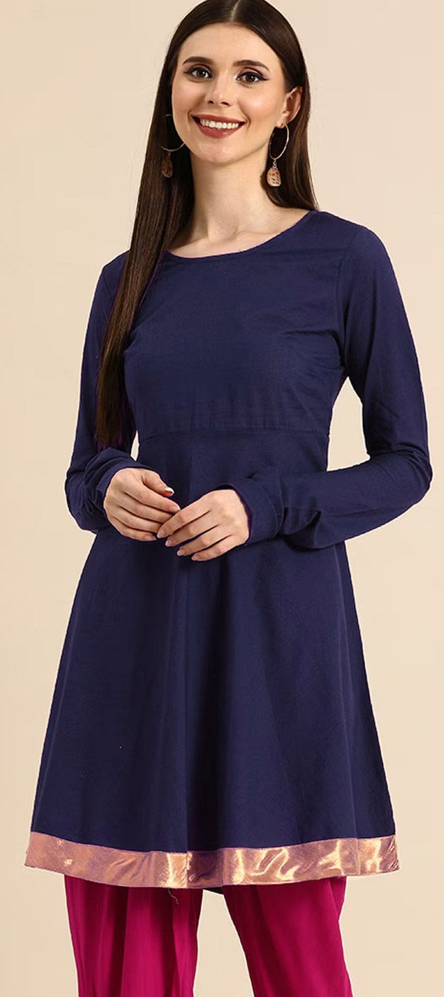 Rayon Festive Kurti in Purple and Violet with Border work