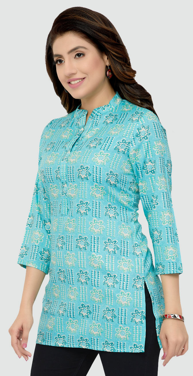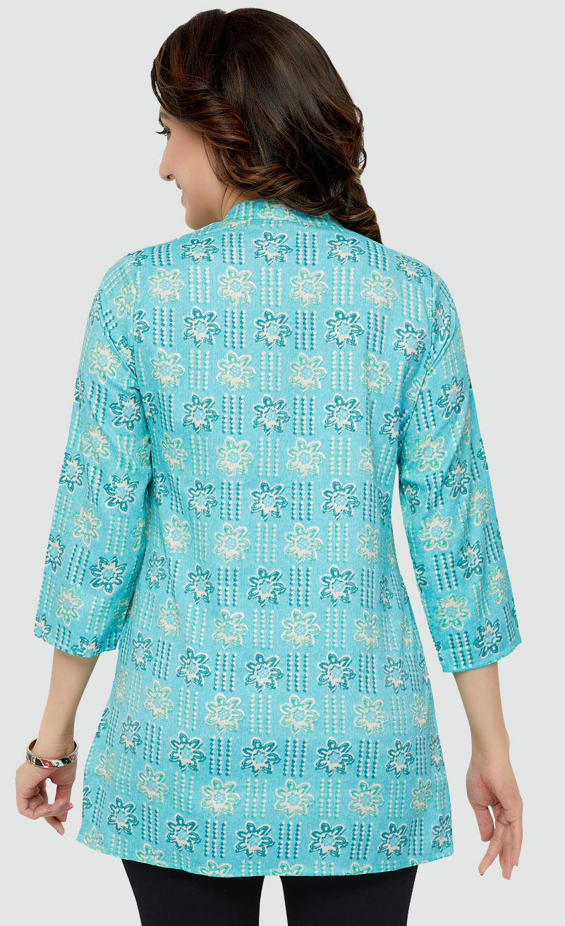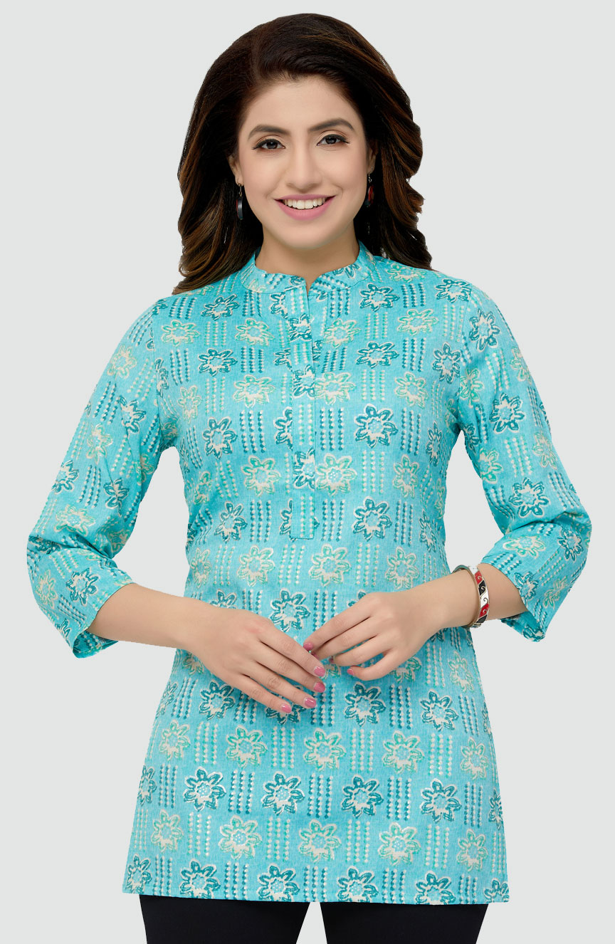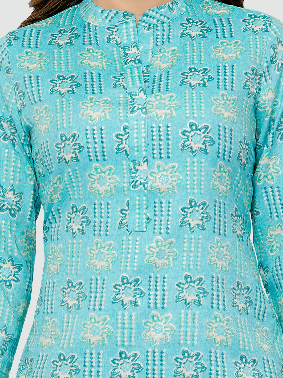 Rayon Casual Kurti in Blue with Floral work