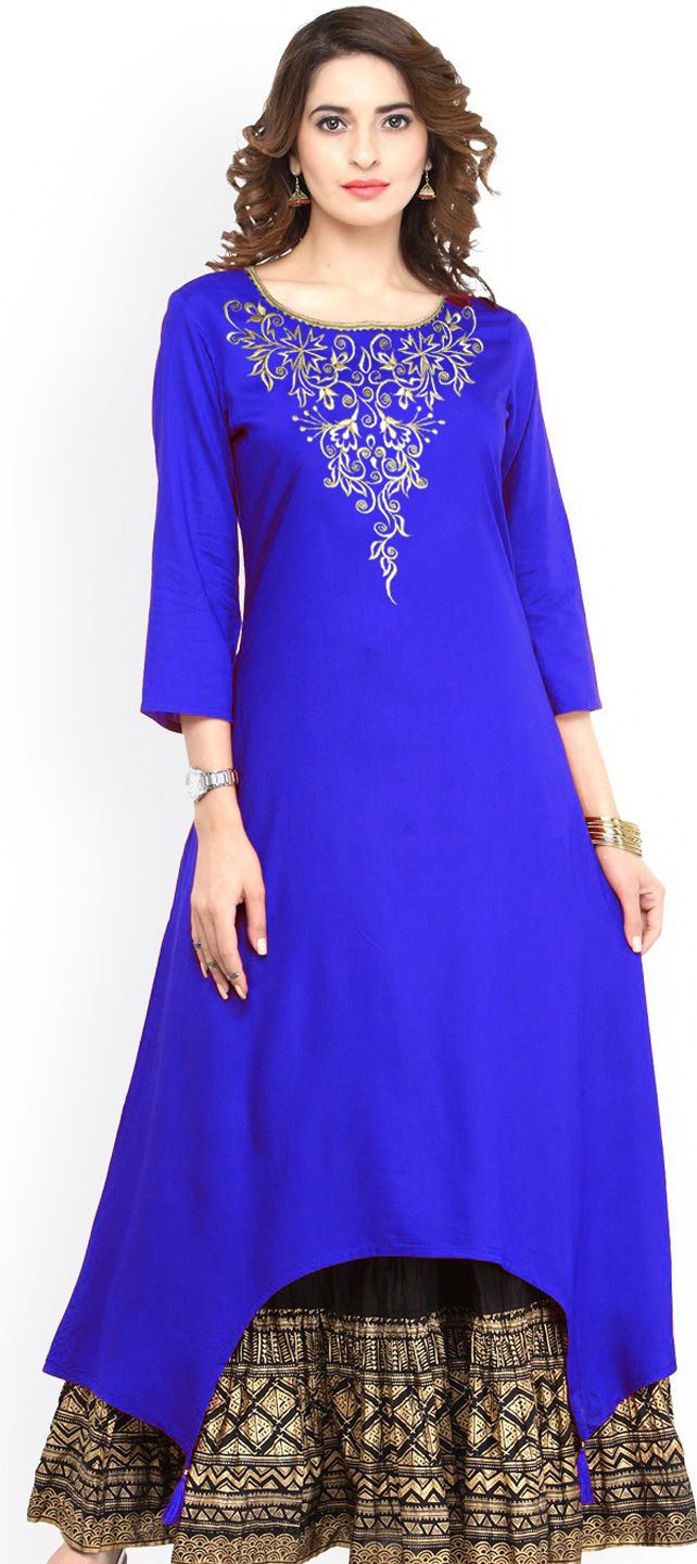 Blue color Kurti in Rayon fabric with Embroidered, Thread work