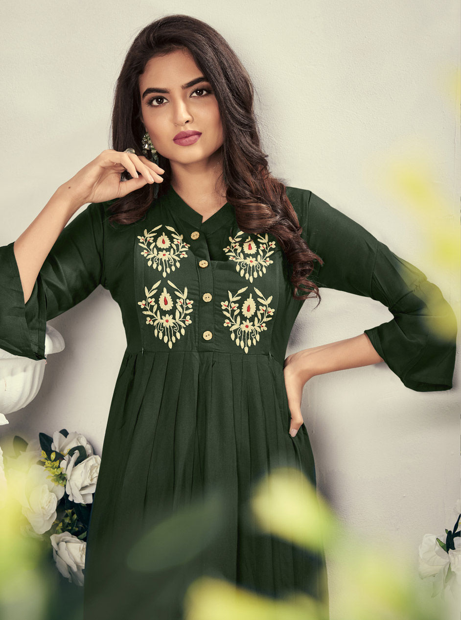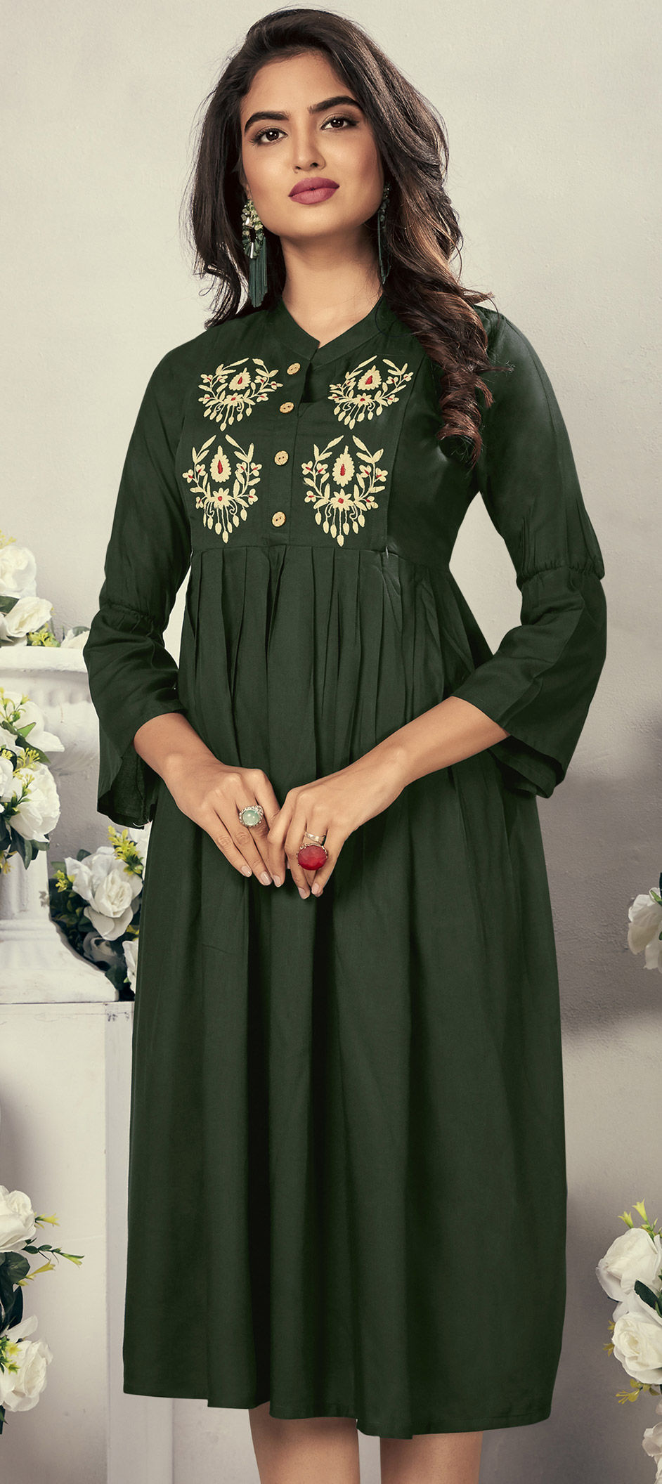 Green color Kurti in Rayon fabric with Embroidered, Resham, Thread work