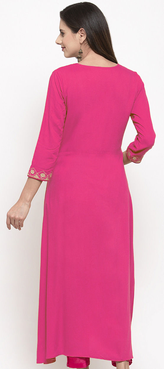Rayon Casual Kurti in Pink and Majenta with Embroidered work
