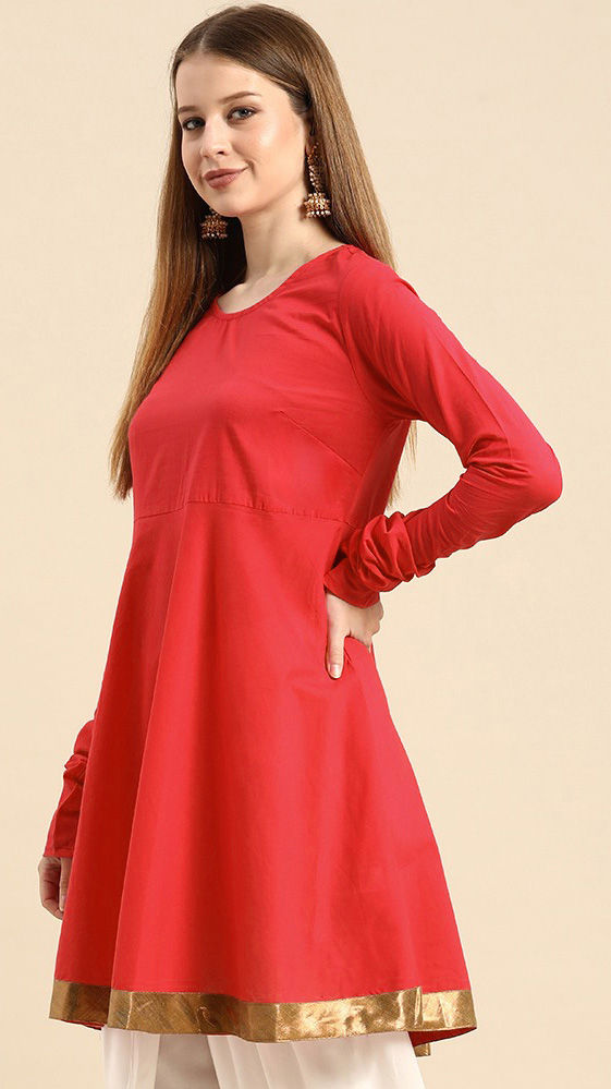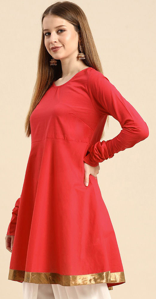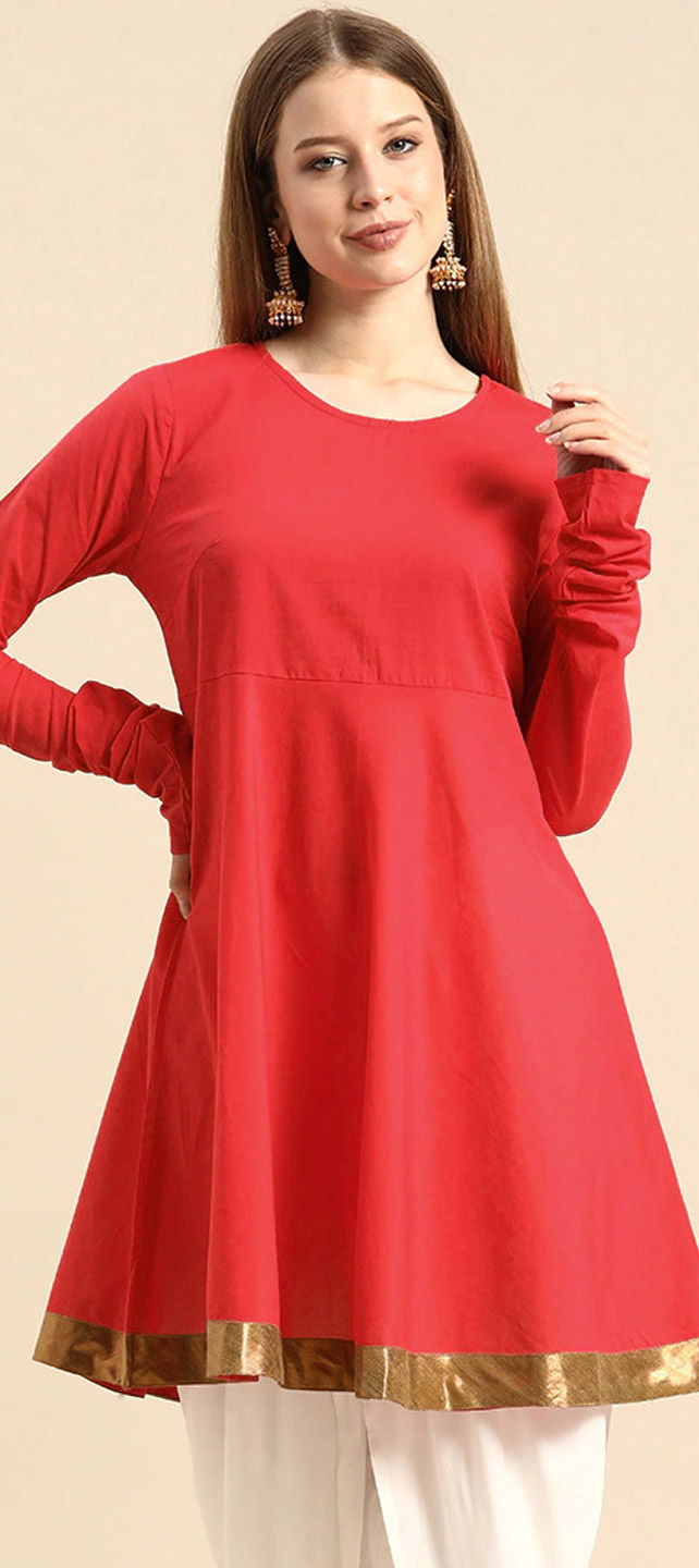 Red and Maroon color Kurti in Rayon fabric with Border work