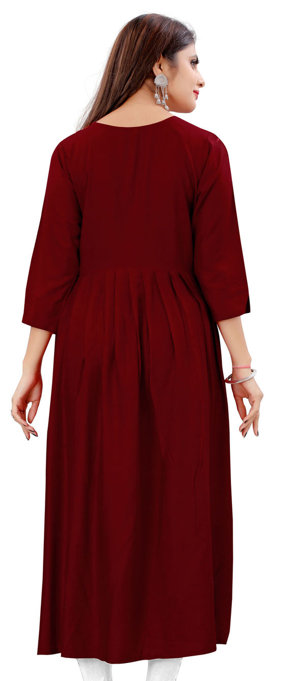 Red and Maroon color Kurti in Rayon fabric with Embroidered, Thread work