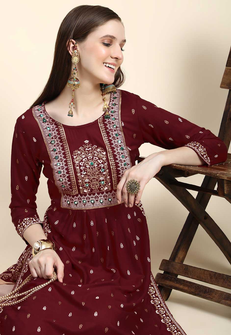 in Red and Maroon with Mirror work