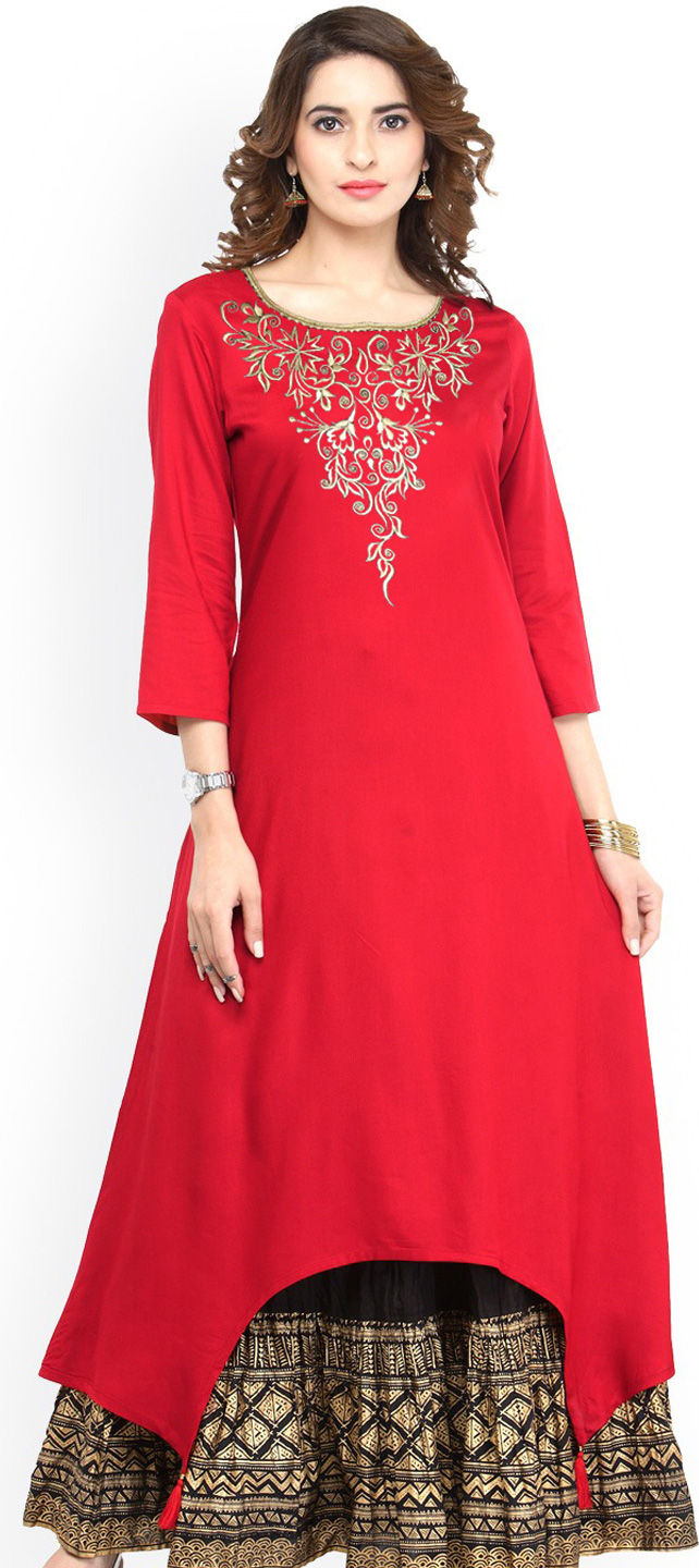 Red and Maroon color Kurti in Rayon fabric with Embroidered, Thread work