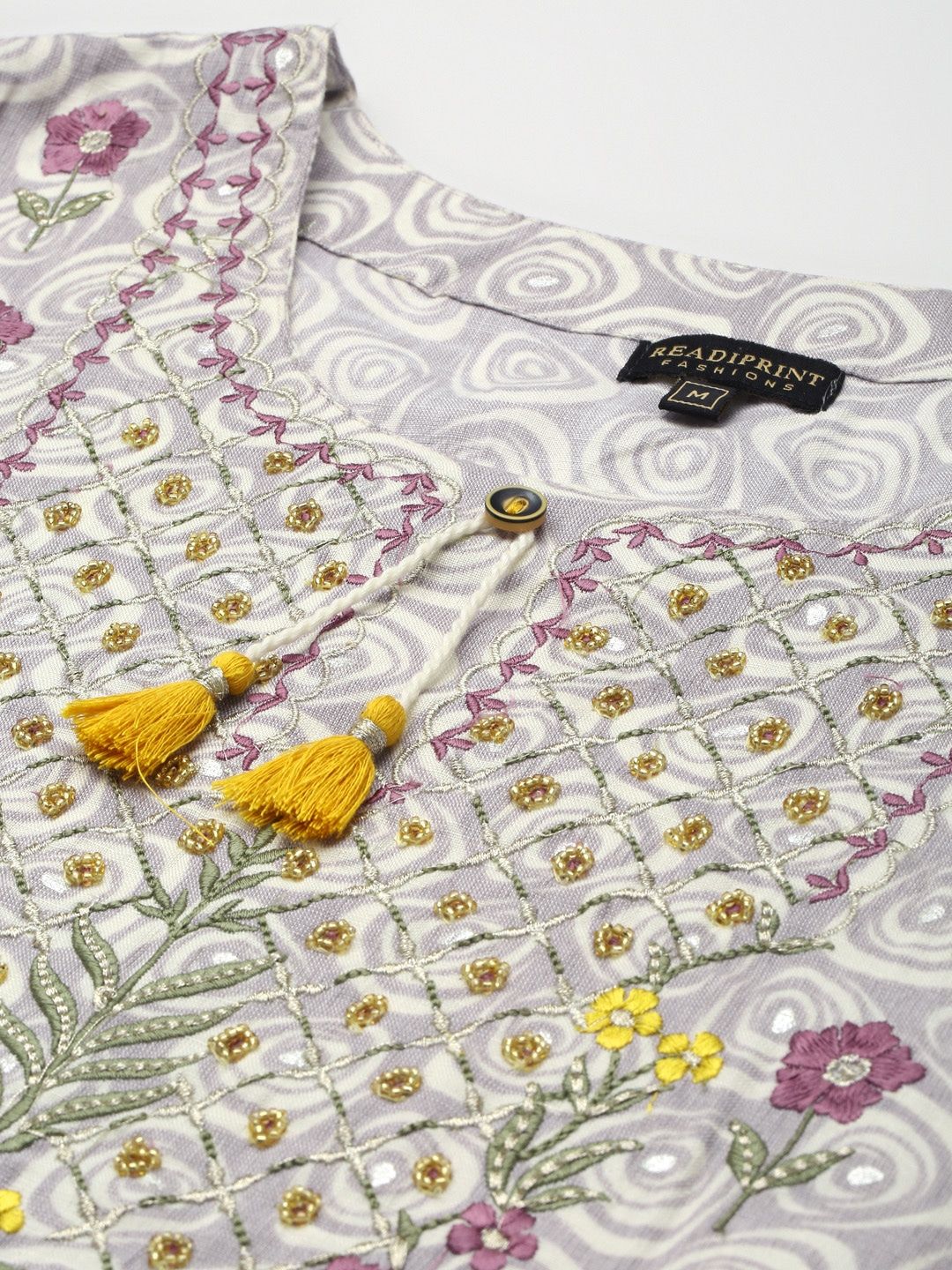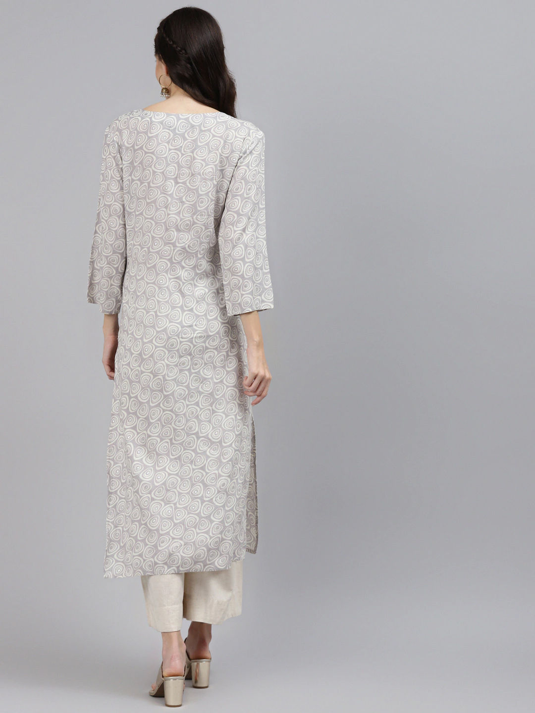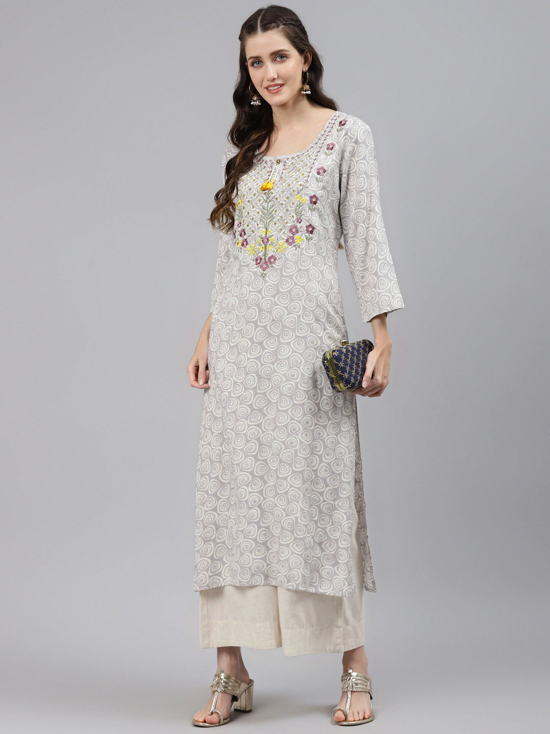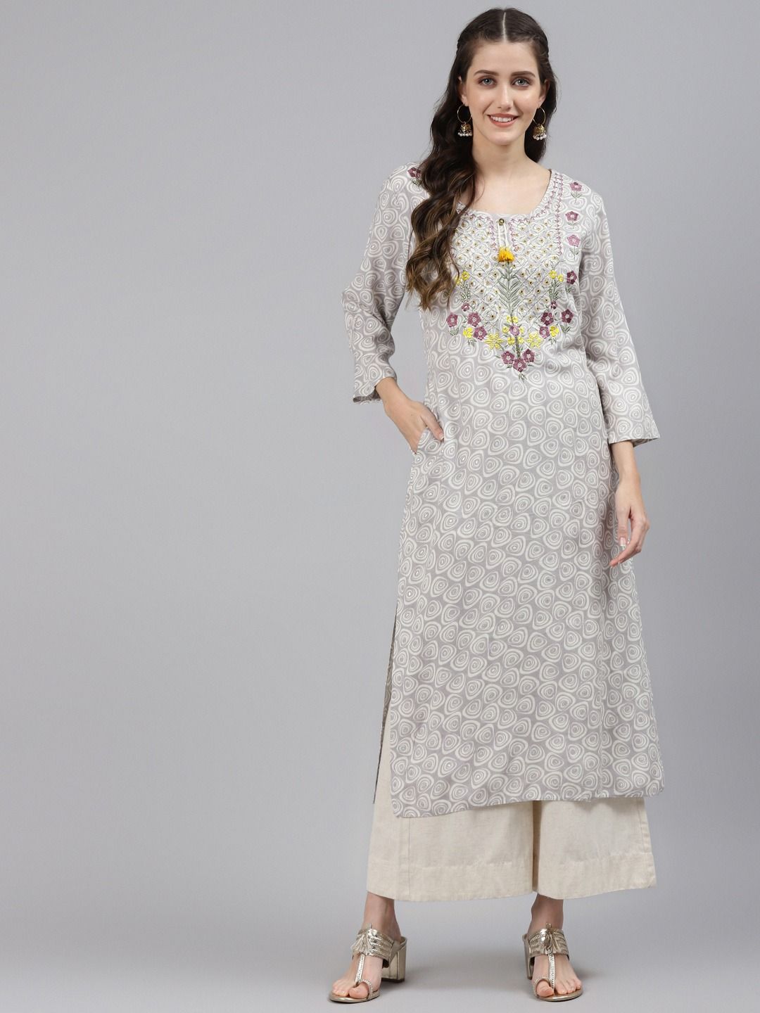 Black and Grey color Kurti in Rayon fabric with Embroidered, Printed, Resham, Thread work