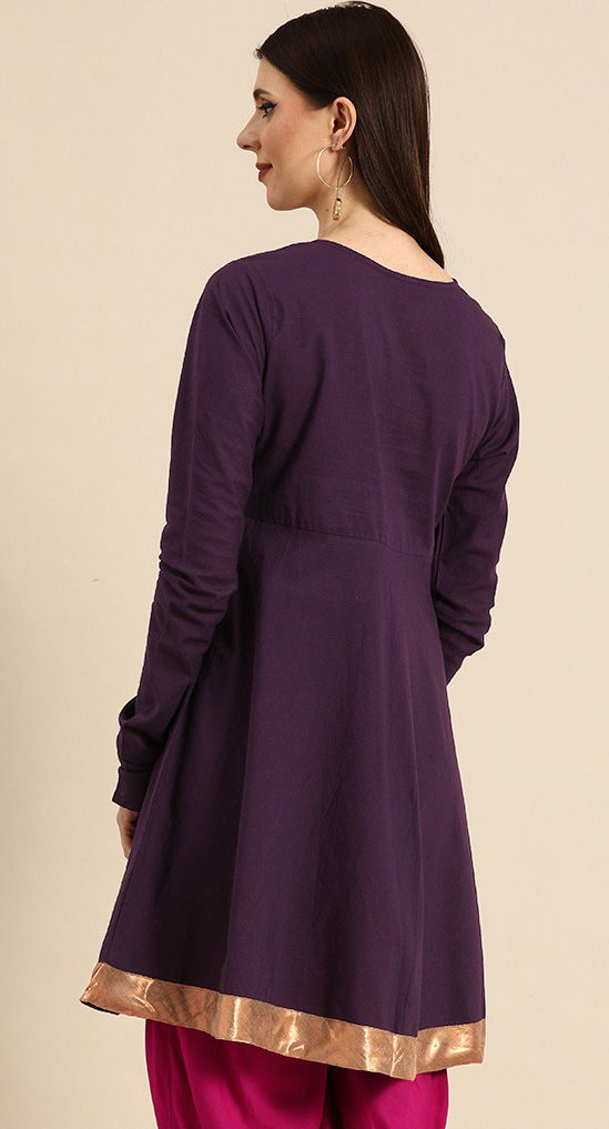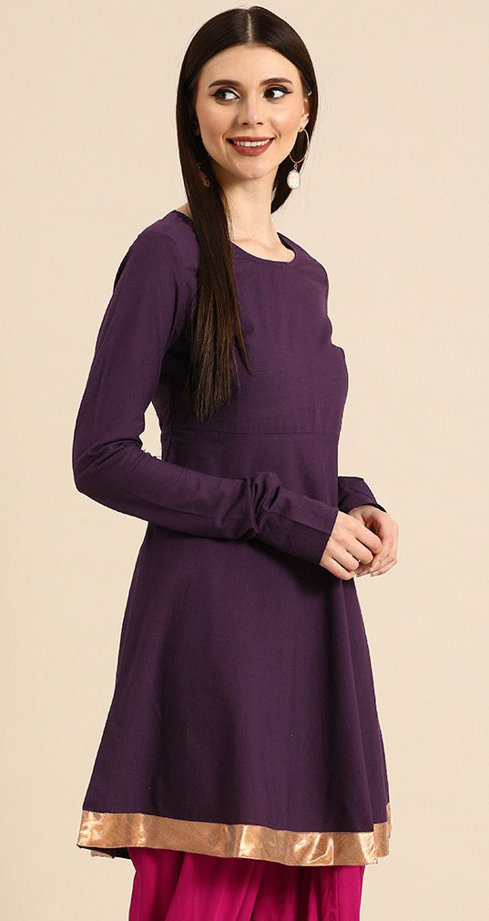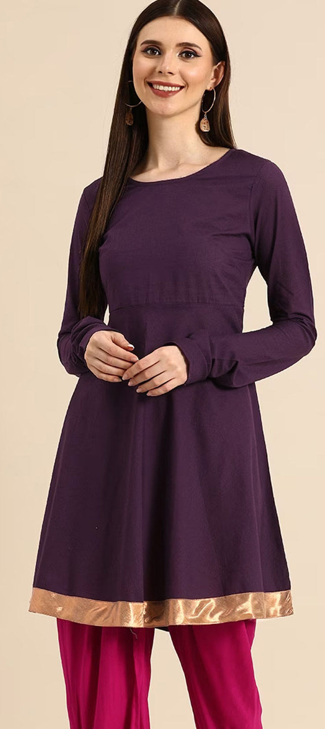 Purple and Violet color Kurti in Rayon fabric with Border work