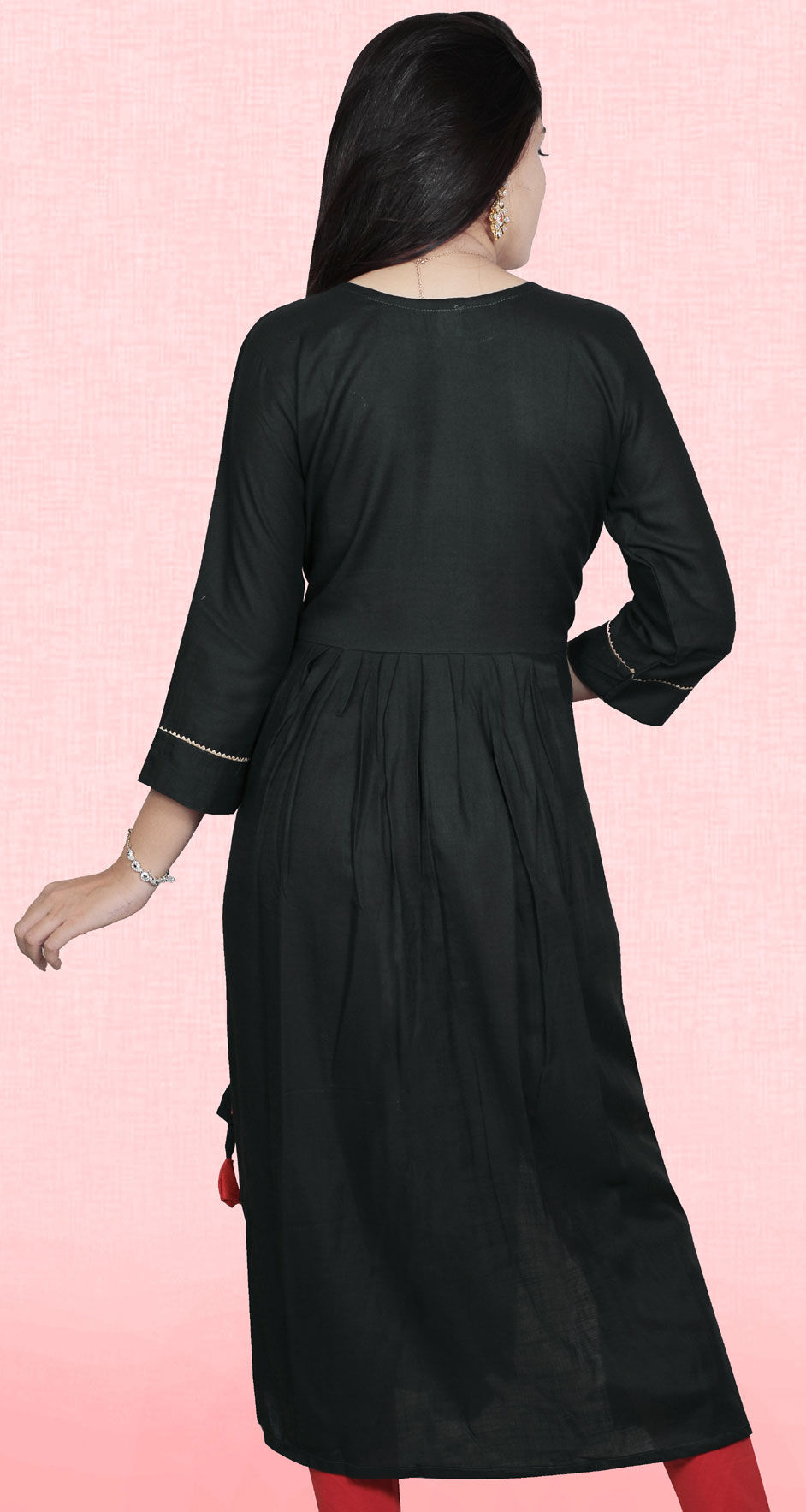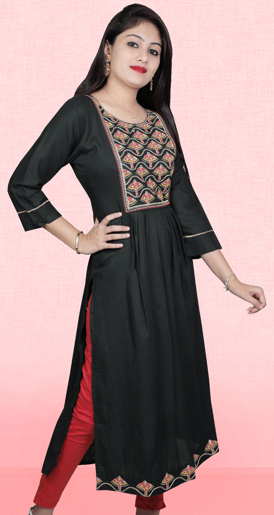 Black and Grey color Kurti in Rayon fabric with Embroidered, Thread work