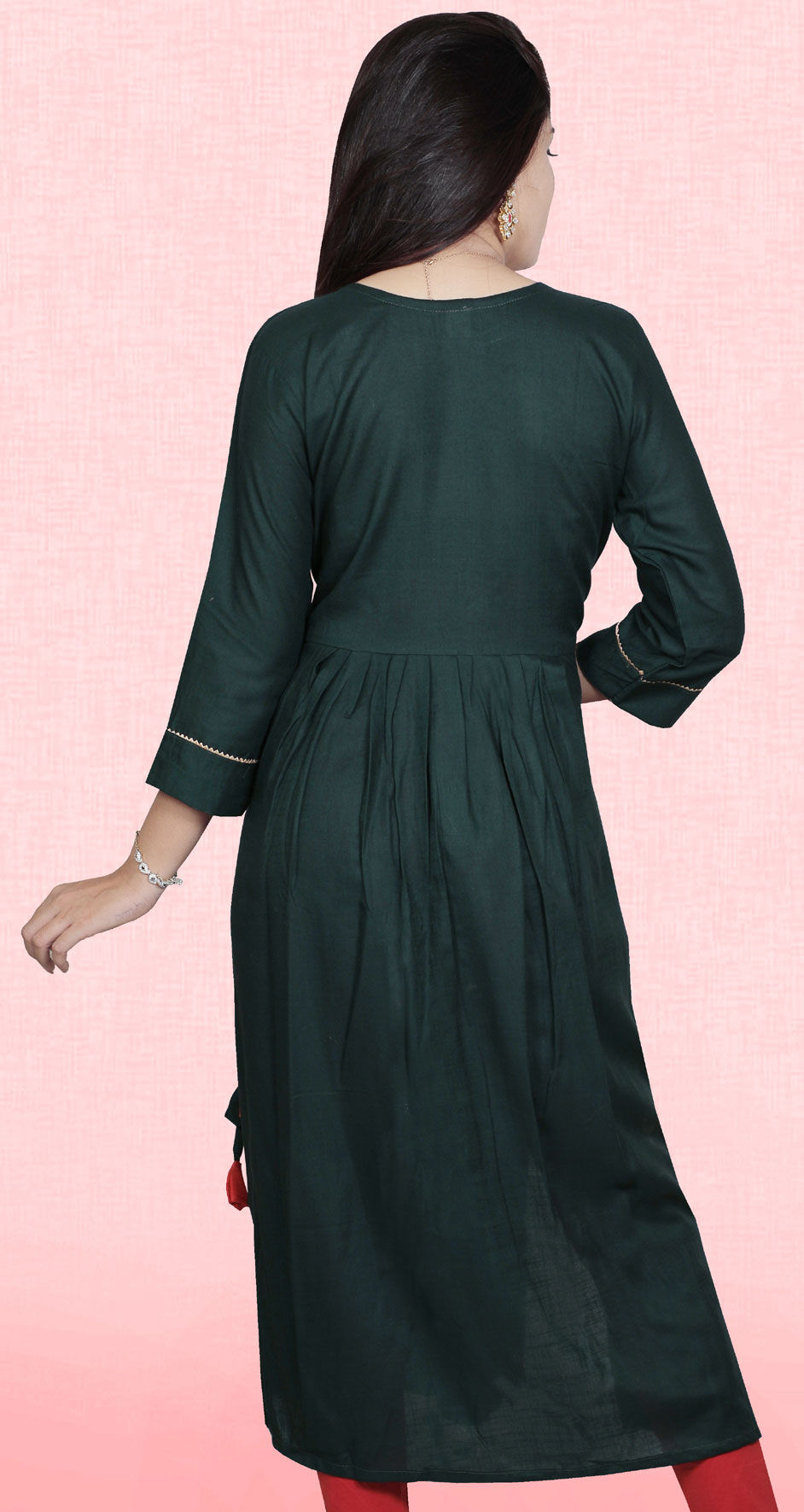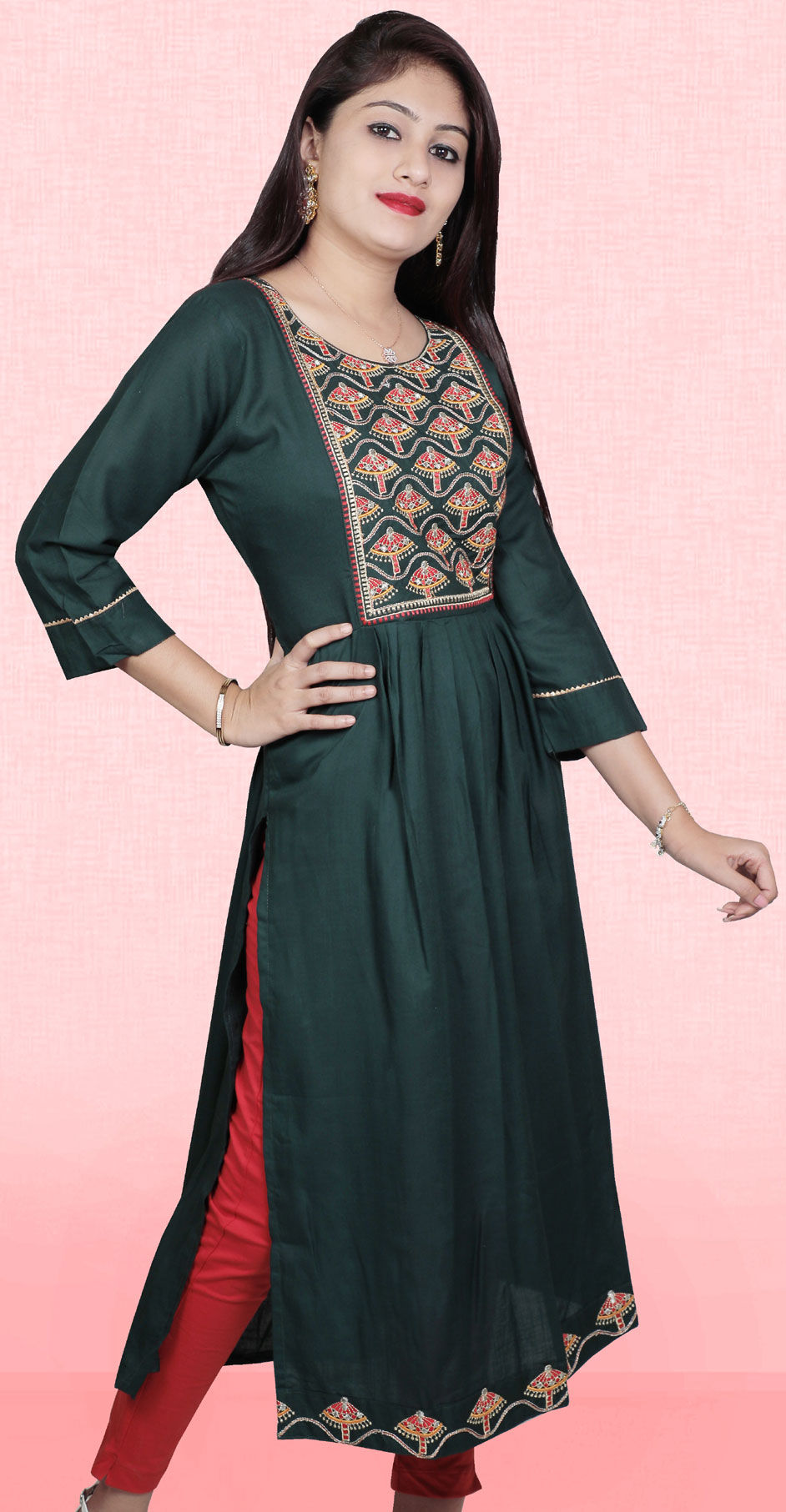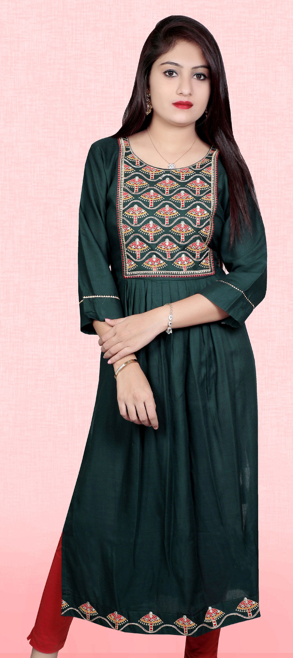 Green color Kurti in Rayon fabric with Embroidered, Thread work