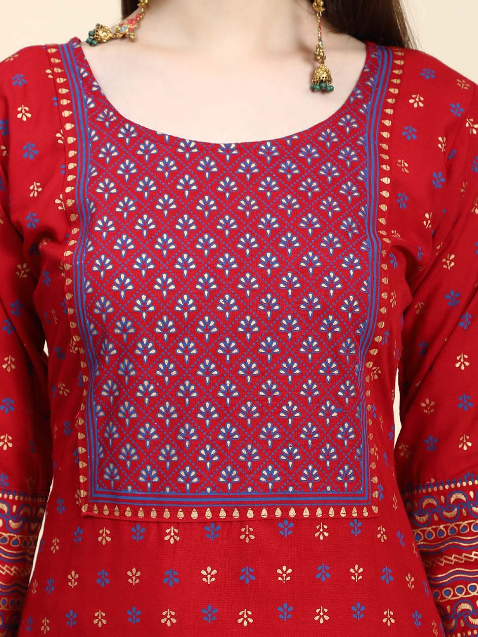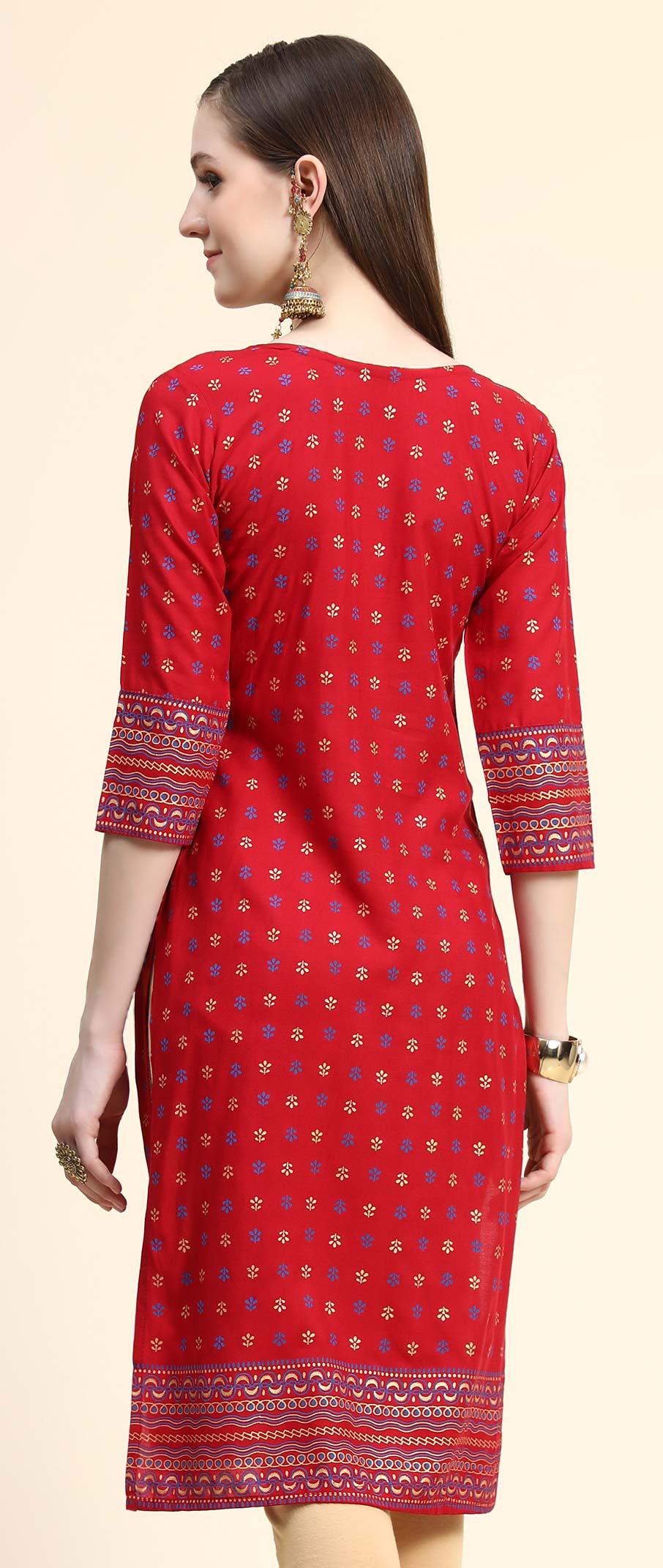 Red and Maroon color Kurti in Rayon fabric with Printed work