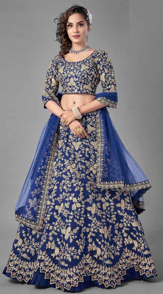 Blue color Lehenga in Art Silk fabric with Sequence, Thread work