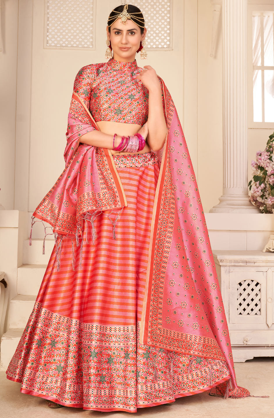 Multicolor color Lehenga in Art Silk, Silk fabric with Digital Print work