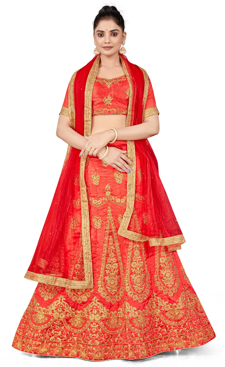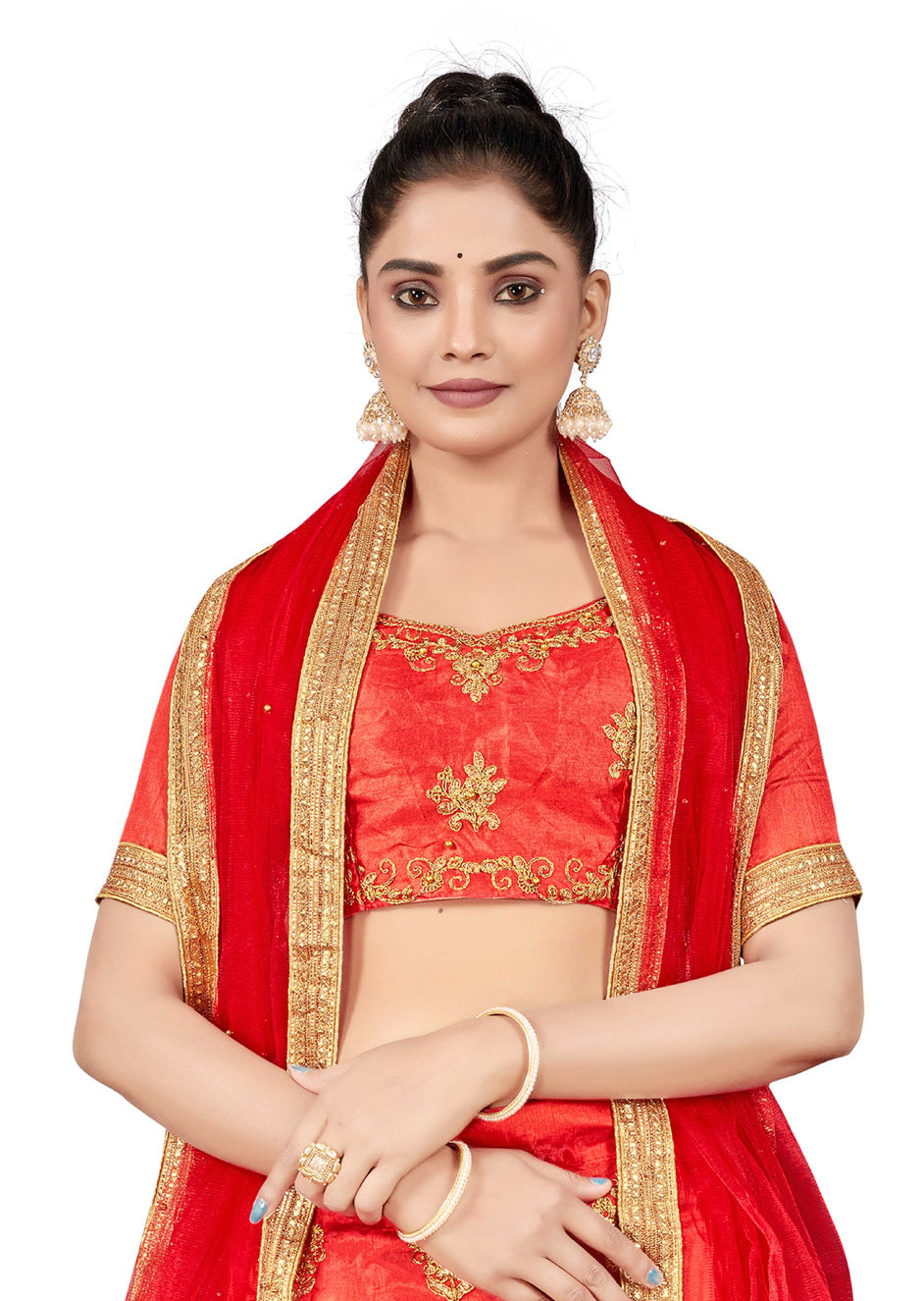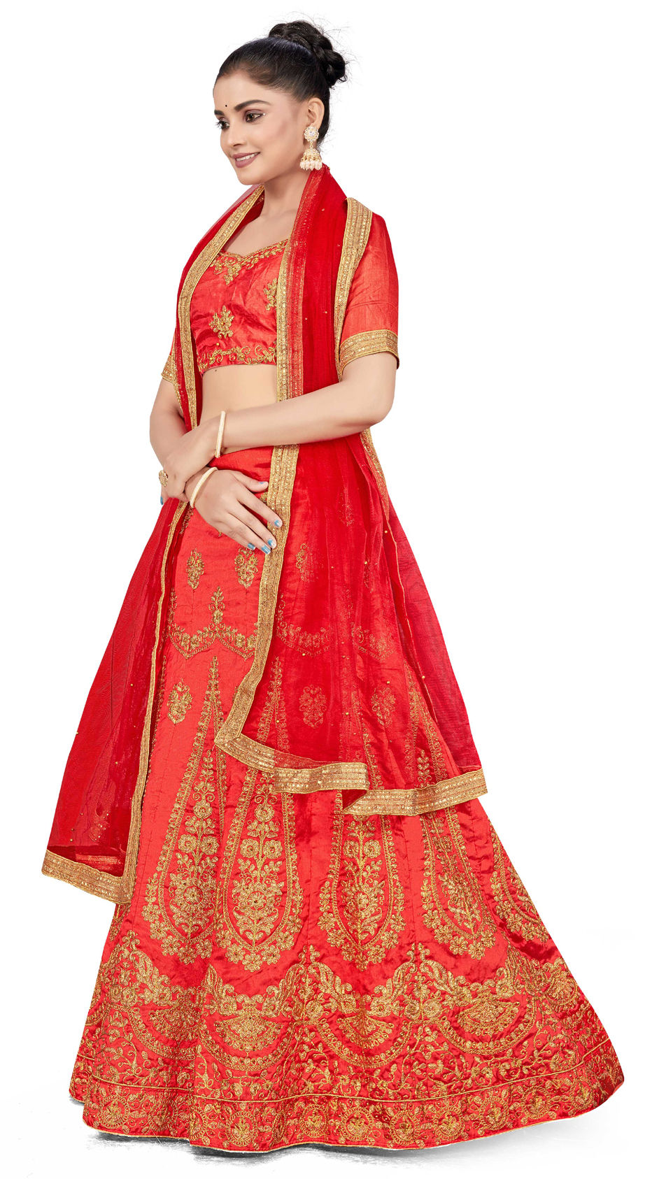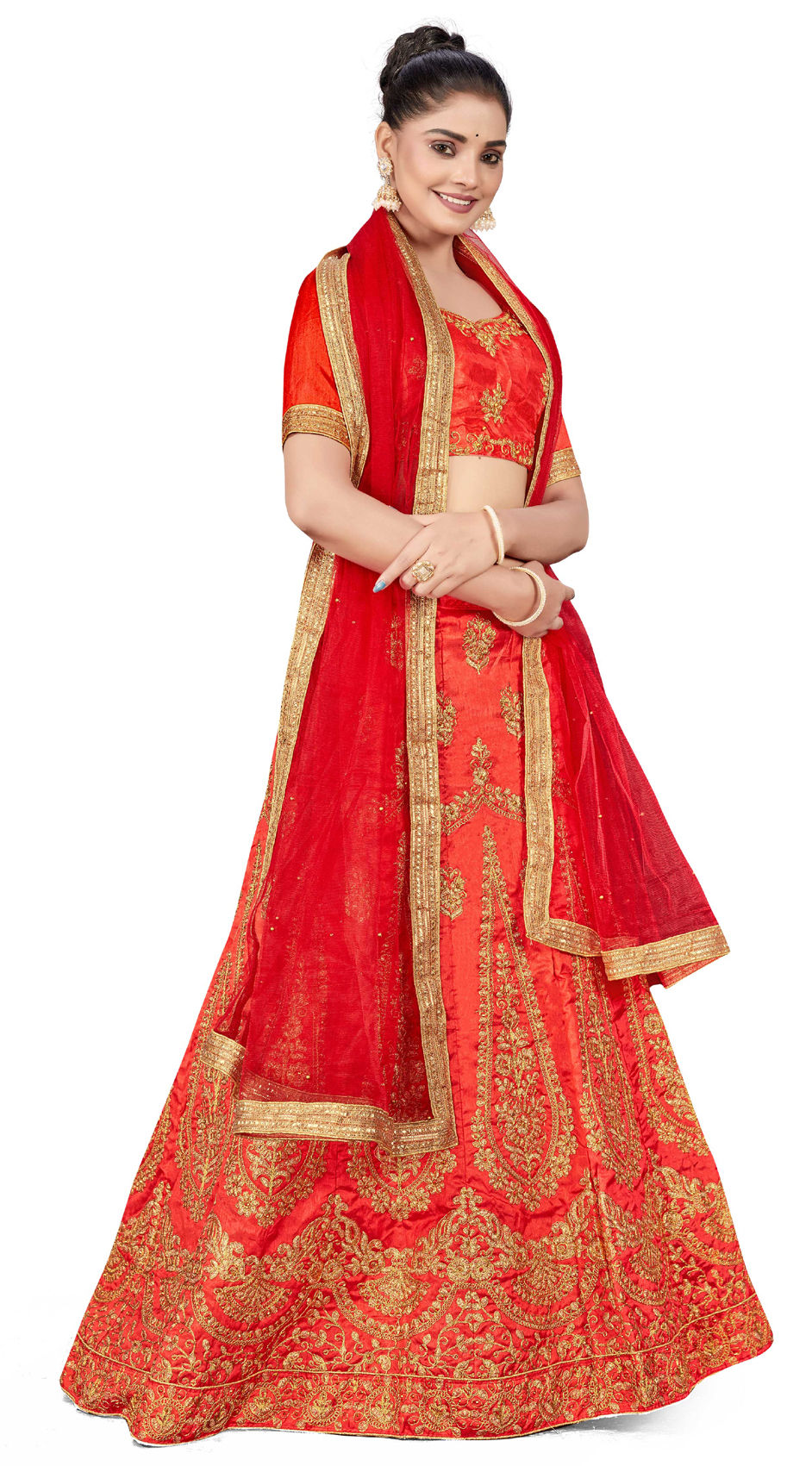 Orange color Lehenga in Art Silk fabric with Embroidered, Stone, Thread, Zari work