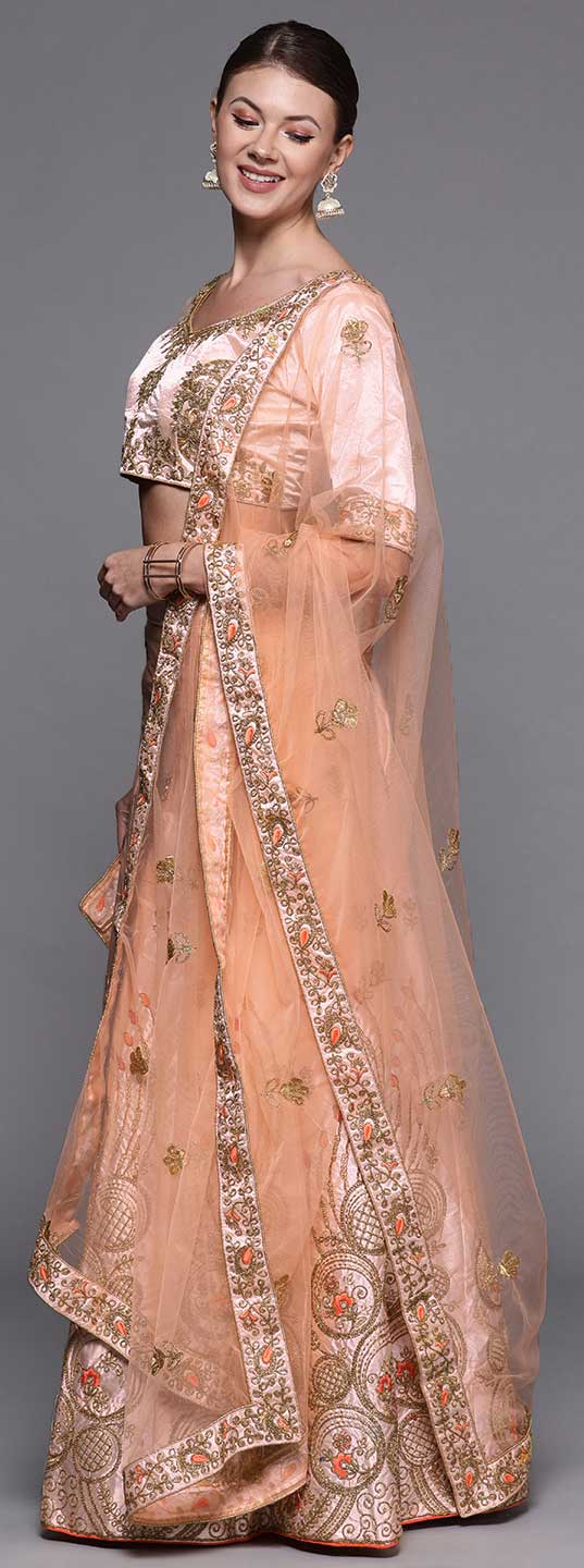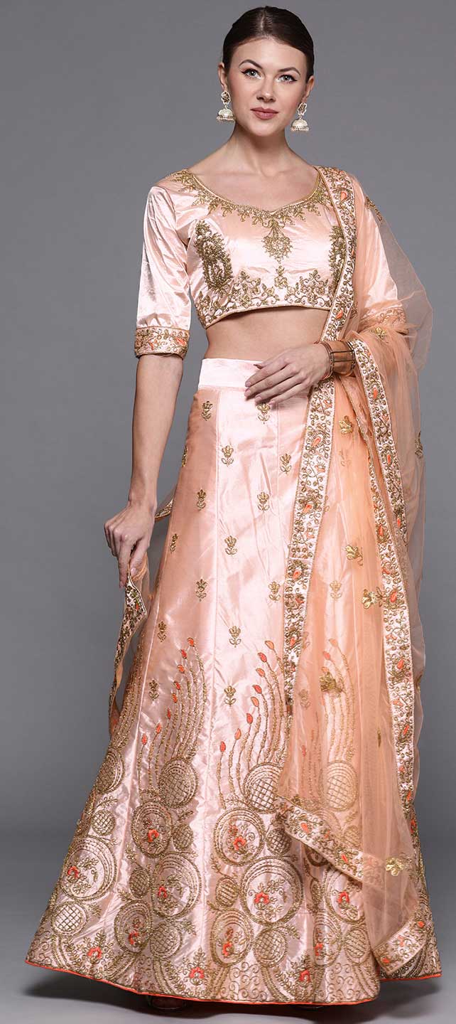 Pink and Majenta color Lehenga in Art Silk fabric with Embroidered, Thread, Zari work