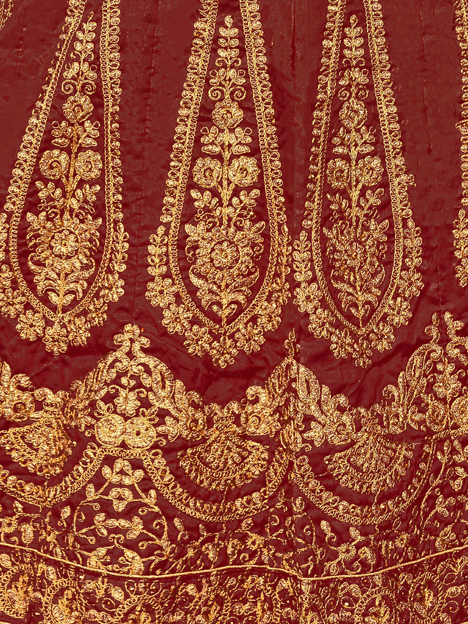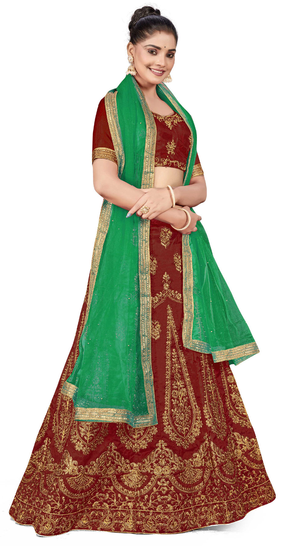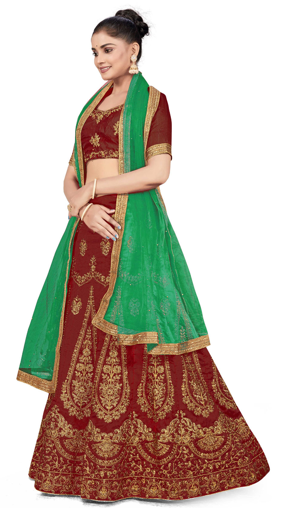 Red and Maroon color Lehenga in Art Silk fabric with Embroidered, Stone, Thread, Zari work