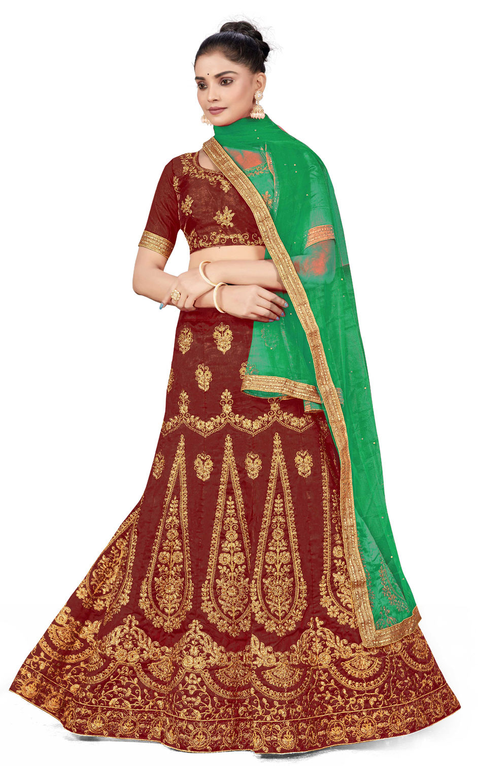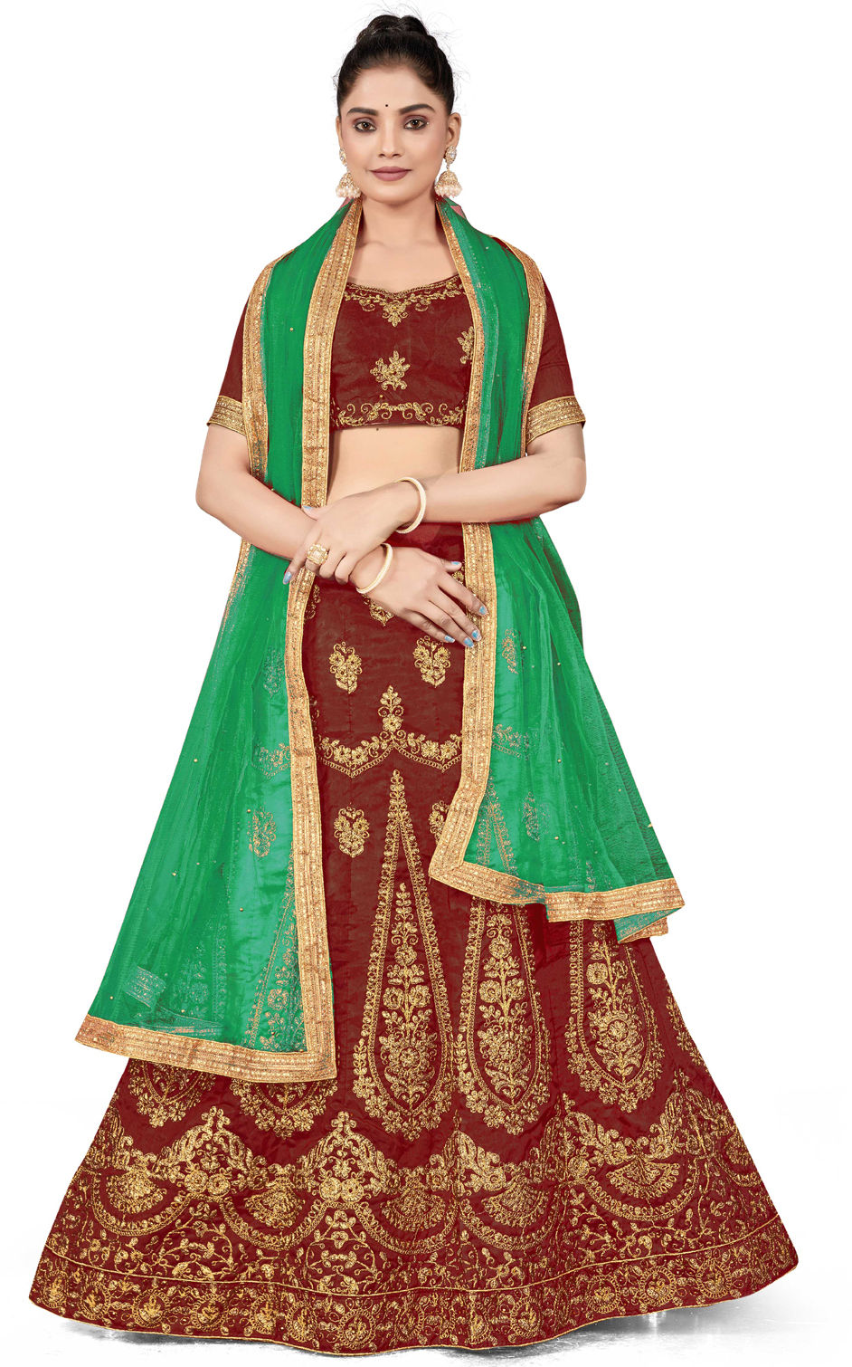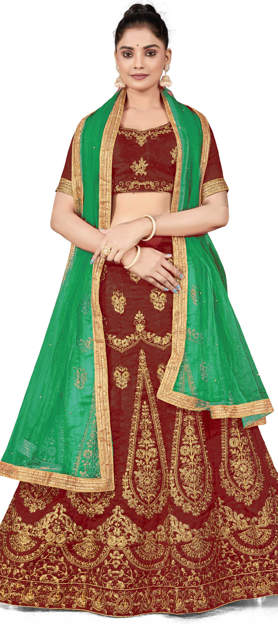Red and Maroon color Lehenga in Art Silk fabric with Embroidered, Stone, Thread, Zari work