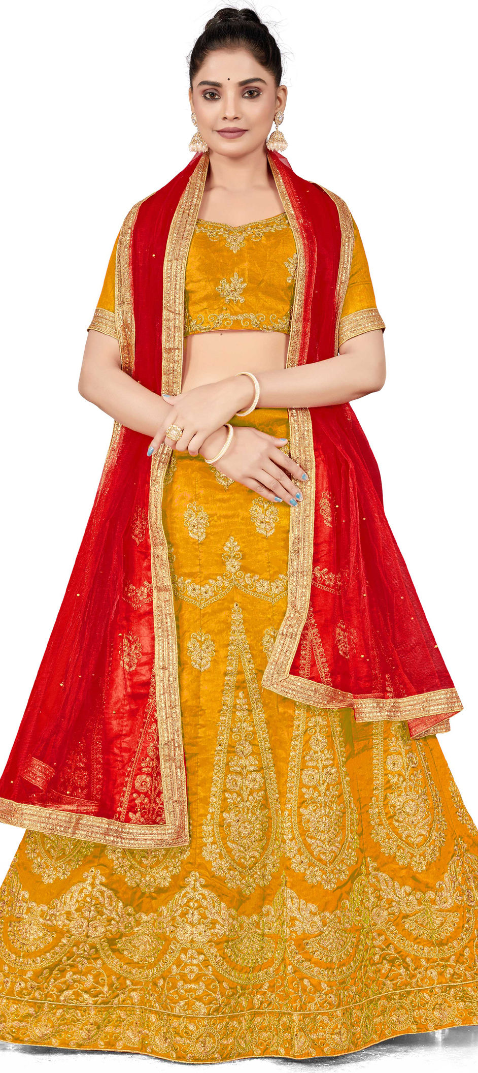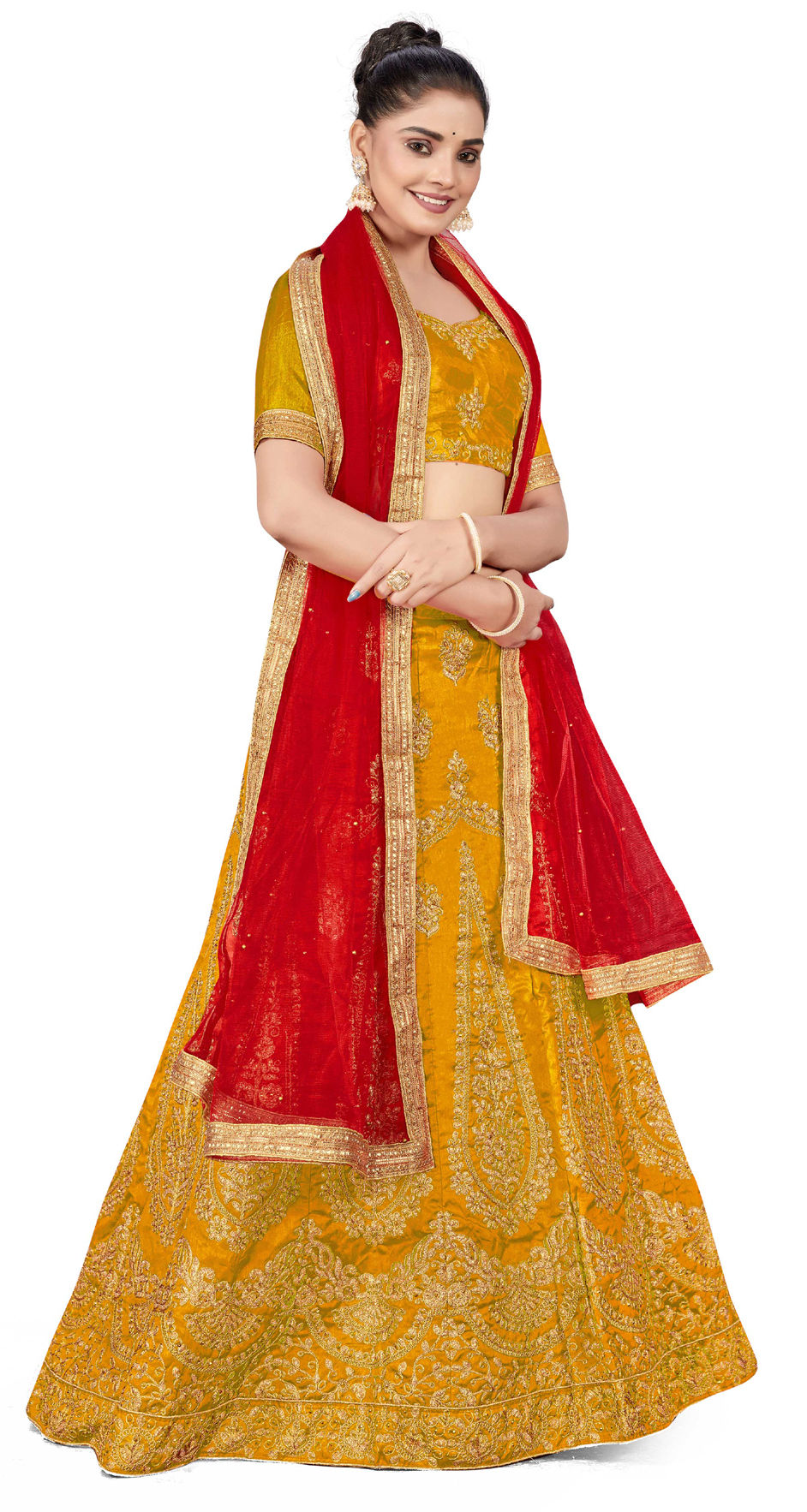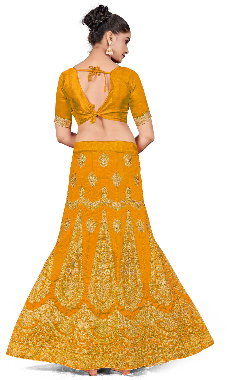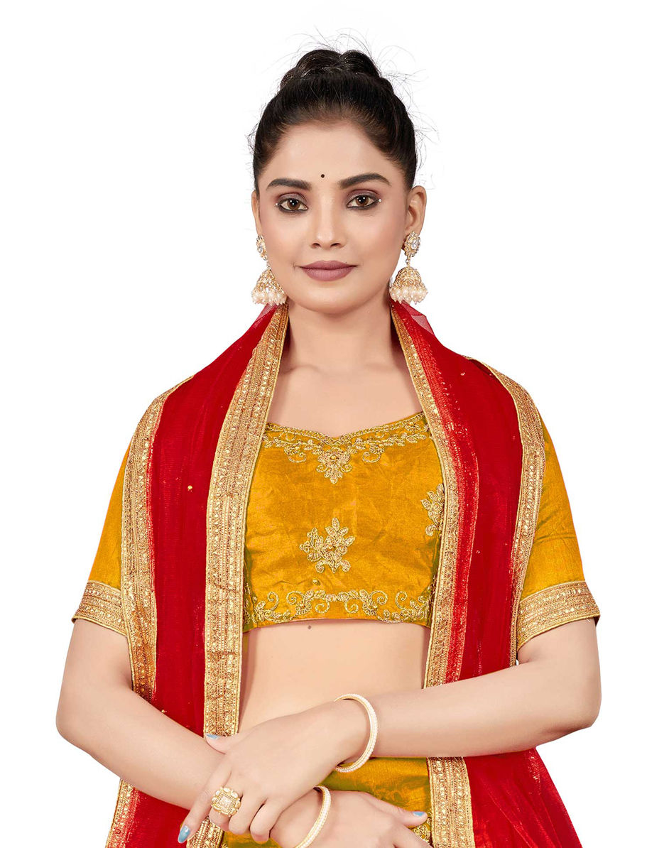 Yellow color Lehenga in Art Silk fabric with Embroidered, Stone, Thread, Zari work
