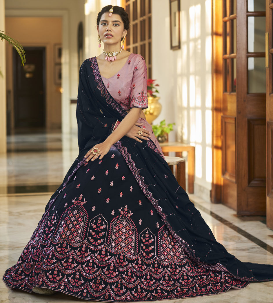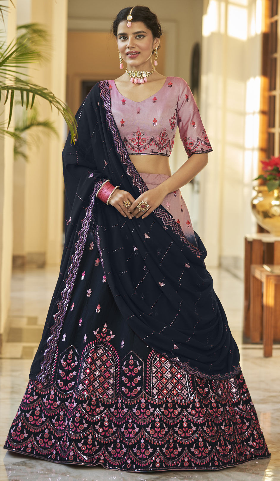 Blue, Pink and Majenta color Lehenga in Art Silk fabric with Embroidered, Mirror, Sequence, Thread work