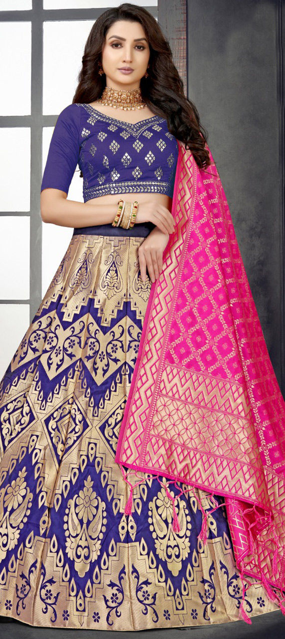 Blue color Lehenga in Banarasi Silk fabric with Weaving, Zari work