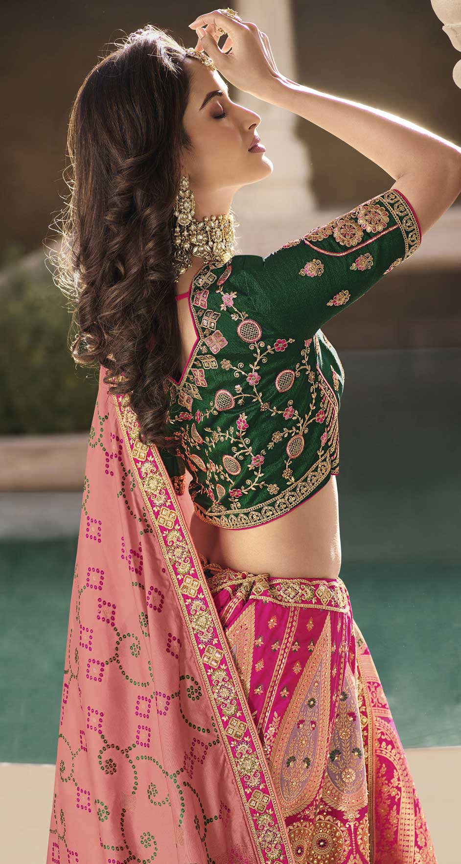 in Pink and Majenta with Stone work