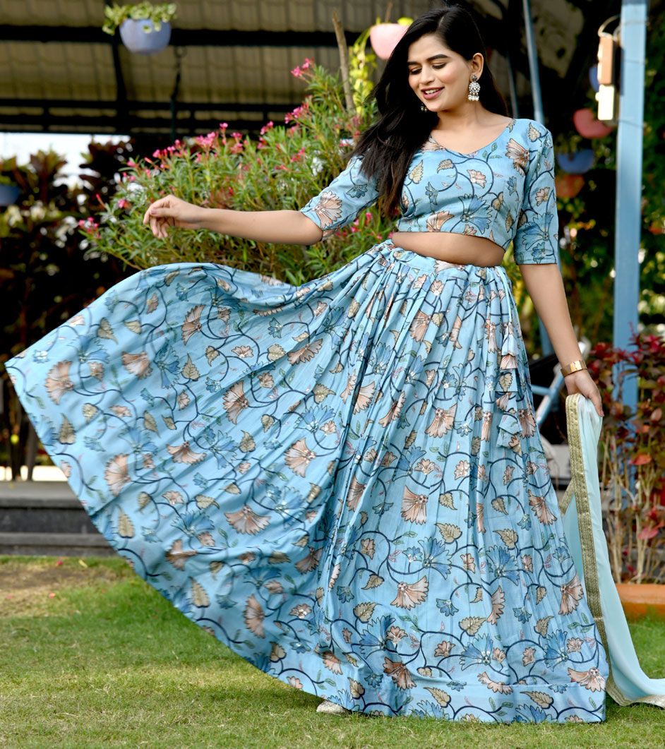 Crepe Silk Festive Lehenga in Multicolor with Printed work