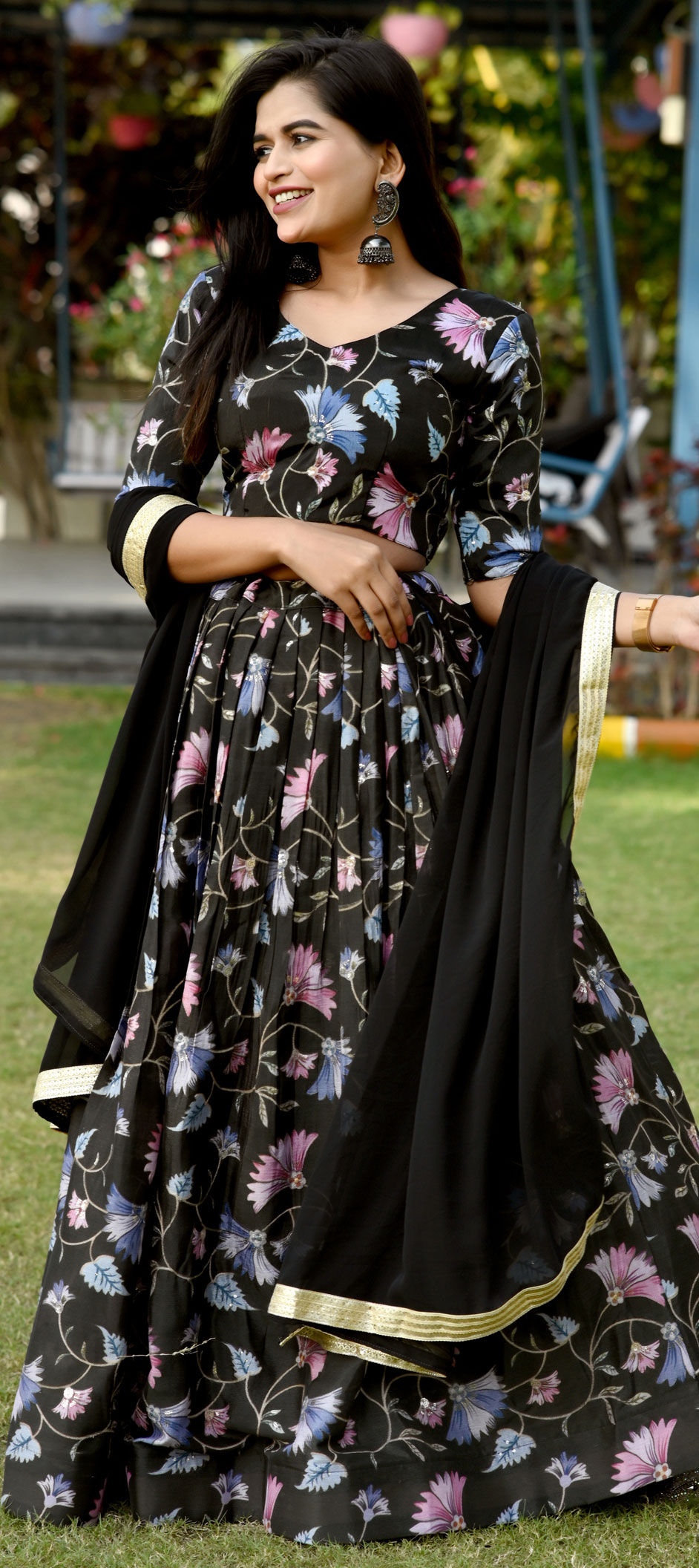 Crepe Silk Festive Lehenga in Multicolor with Printed work