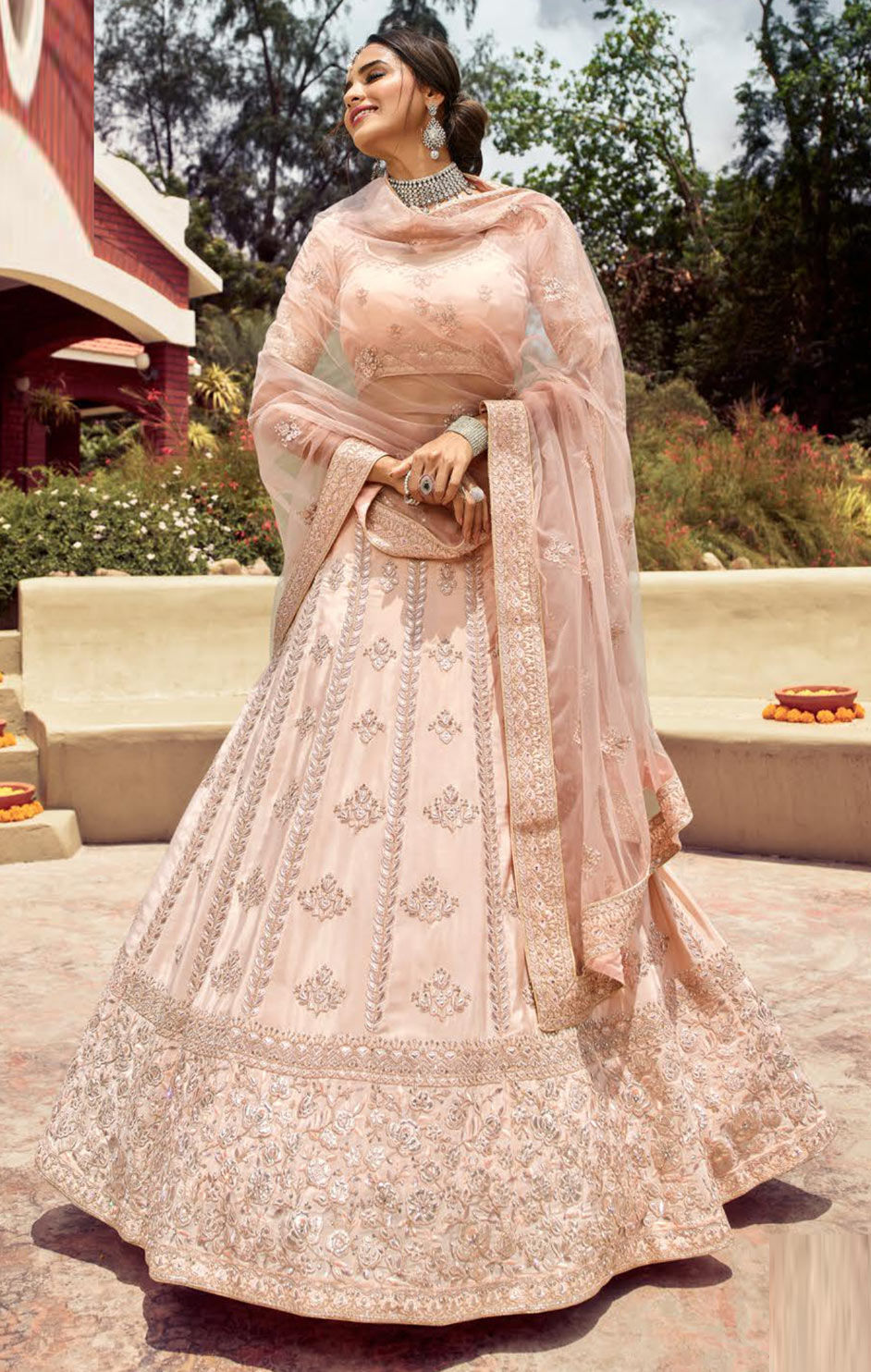 Pink and Majenta color Lehenga in Crepe Silk fabric with Gota Patti, Resham, Thread, Zircon work