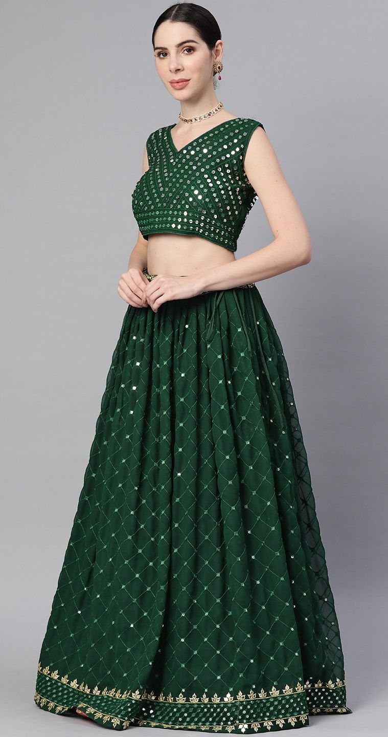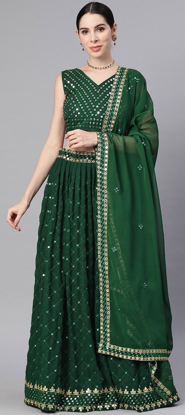 Green color Lehenga in Faux Georgette fabric with Sequence work