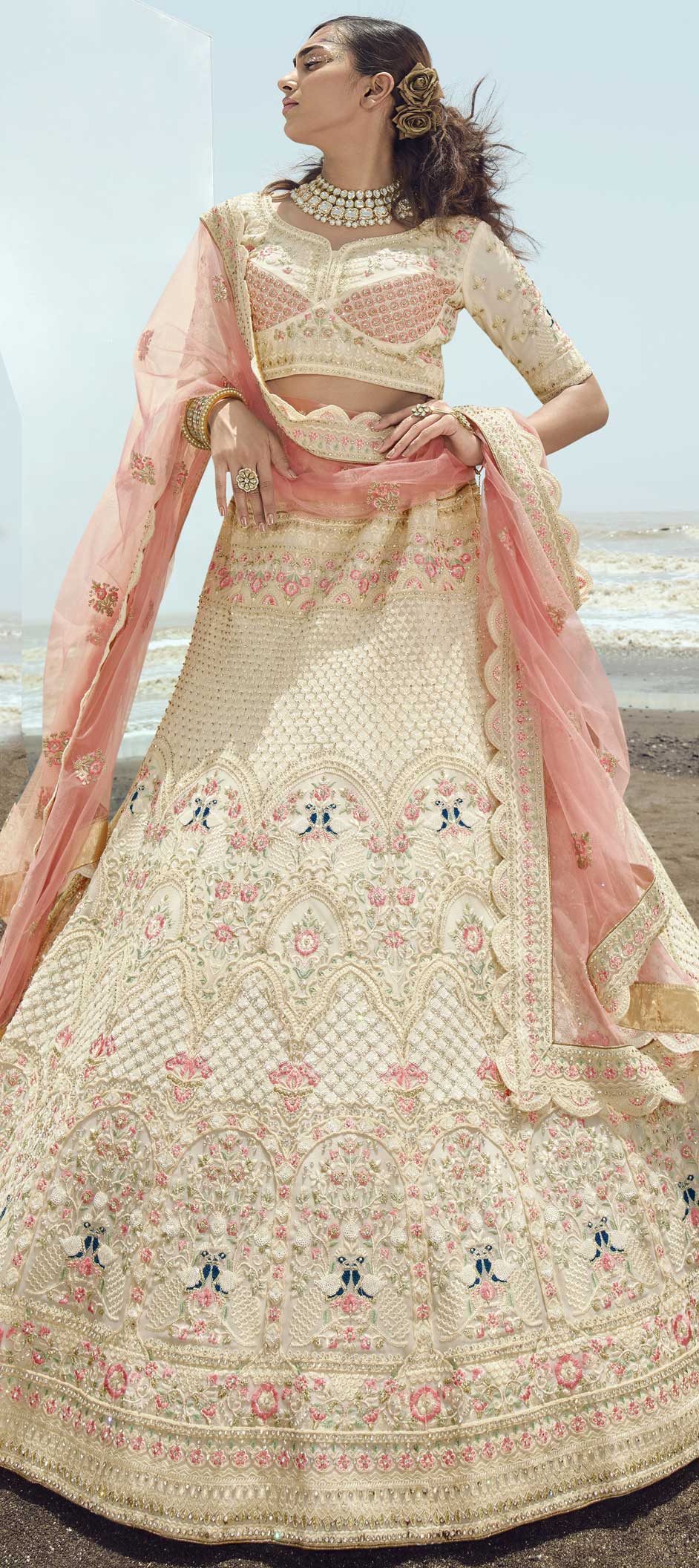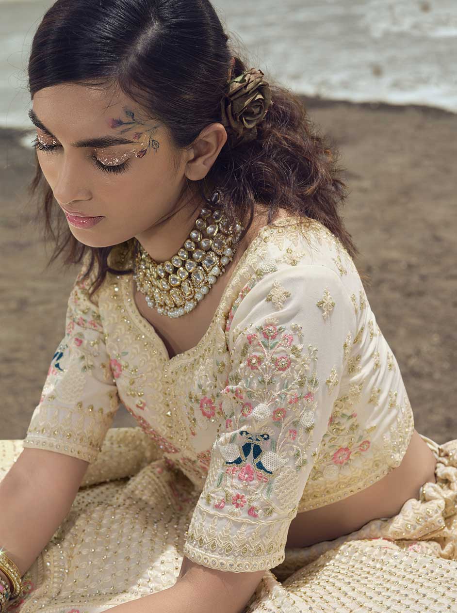White and Off White color Lehenga in Georgette fabric with Embroidered, Resham, Stone, Thread, Zari, Zircon work