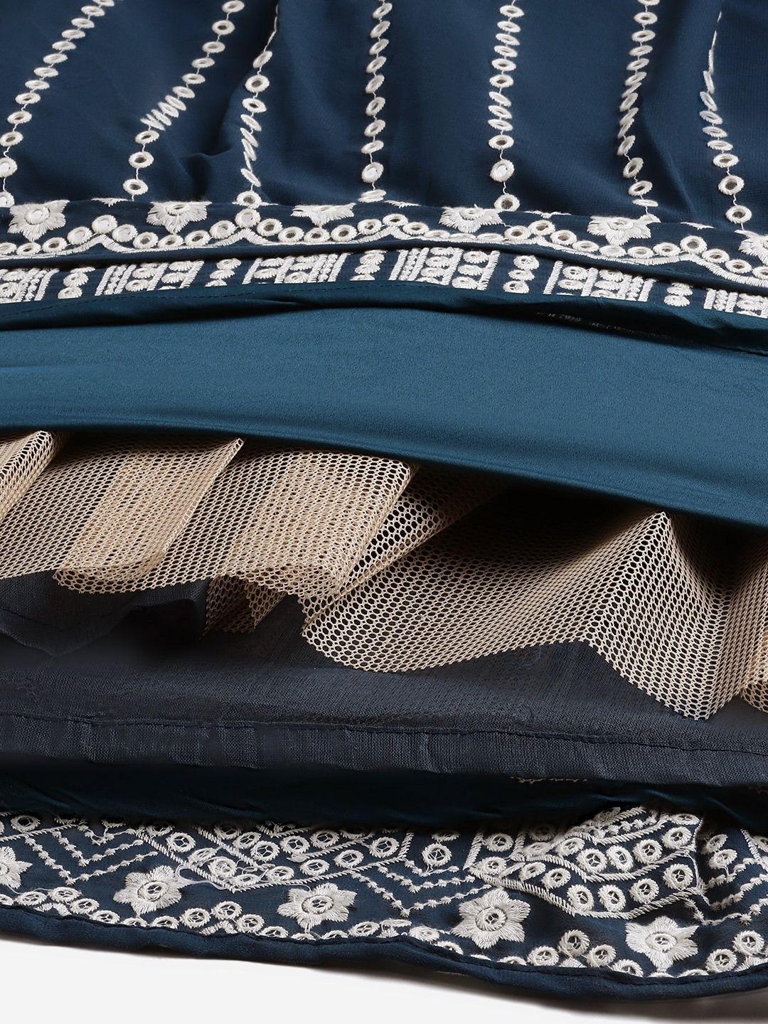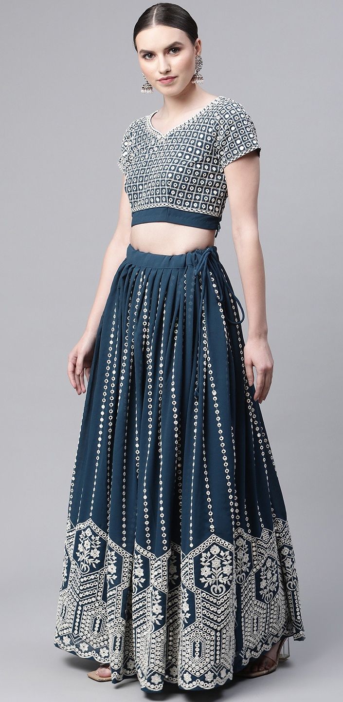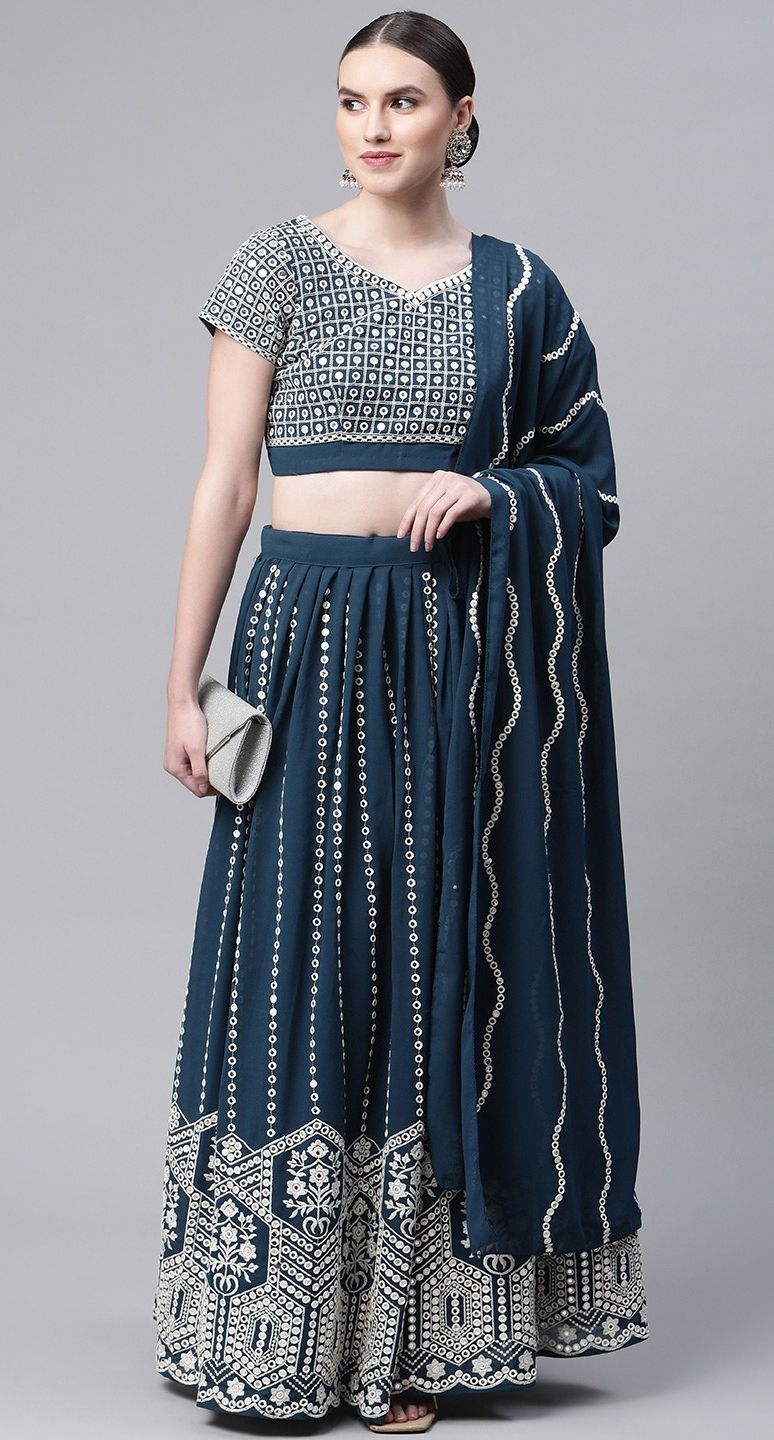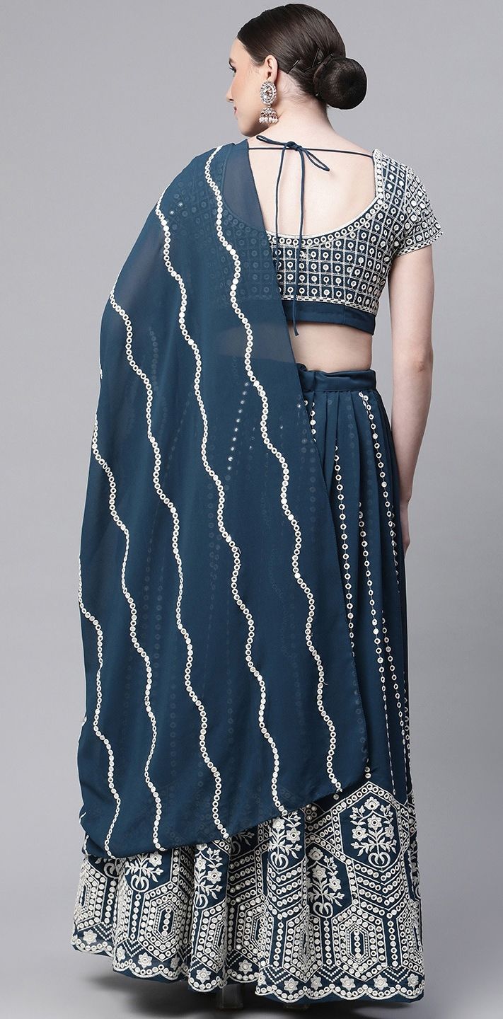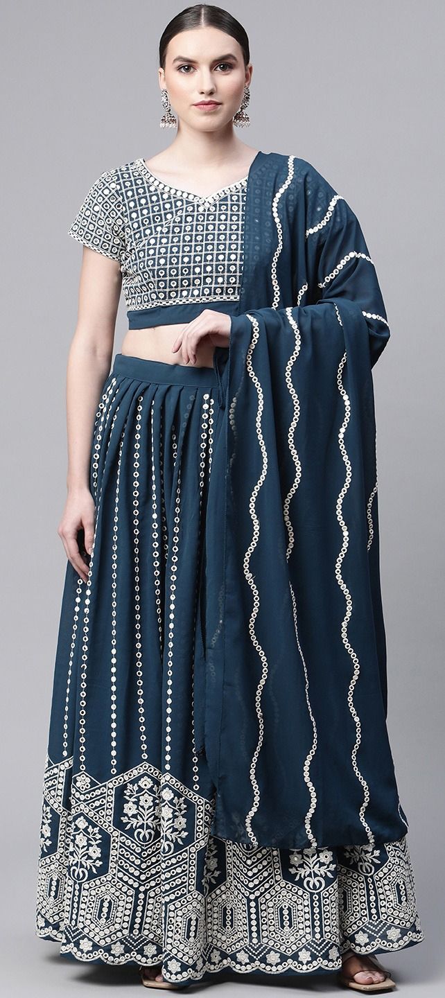 Blue color Lehenga in Georgette fabric with Embroidered, Mirror, Resham, Thread work