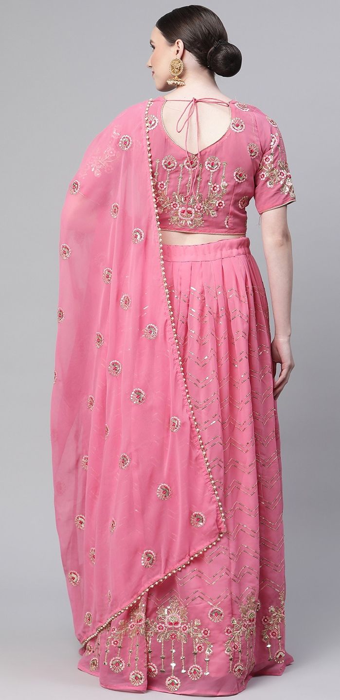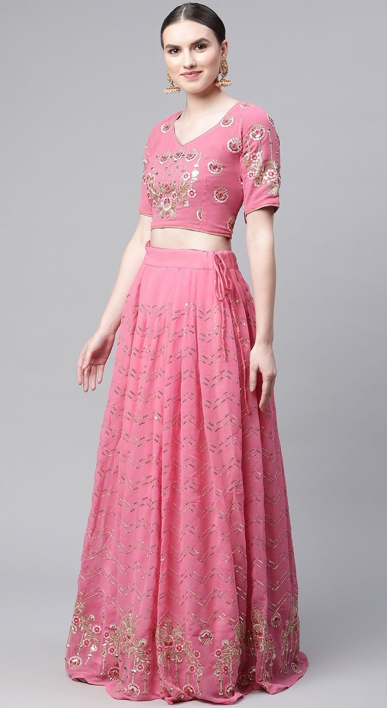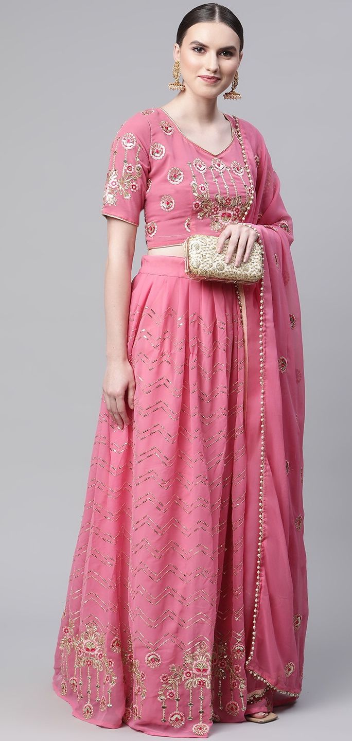 Pink and Majenta color Lehenga in Georgette fabric with Embroidered, Resham, Sequence, Thread, Zari work