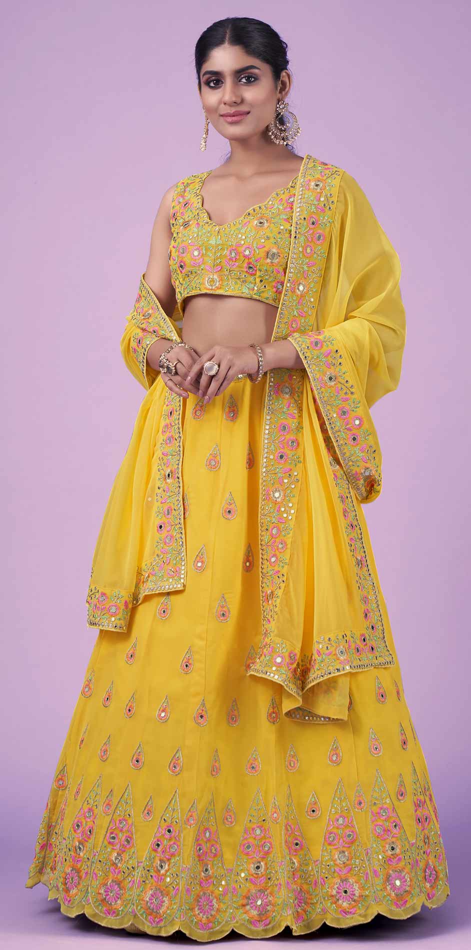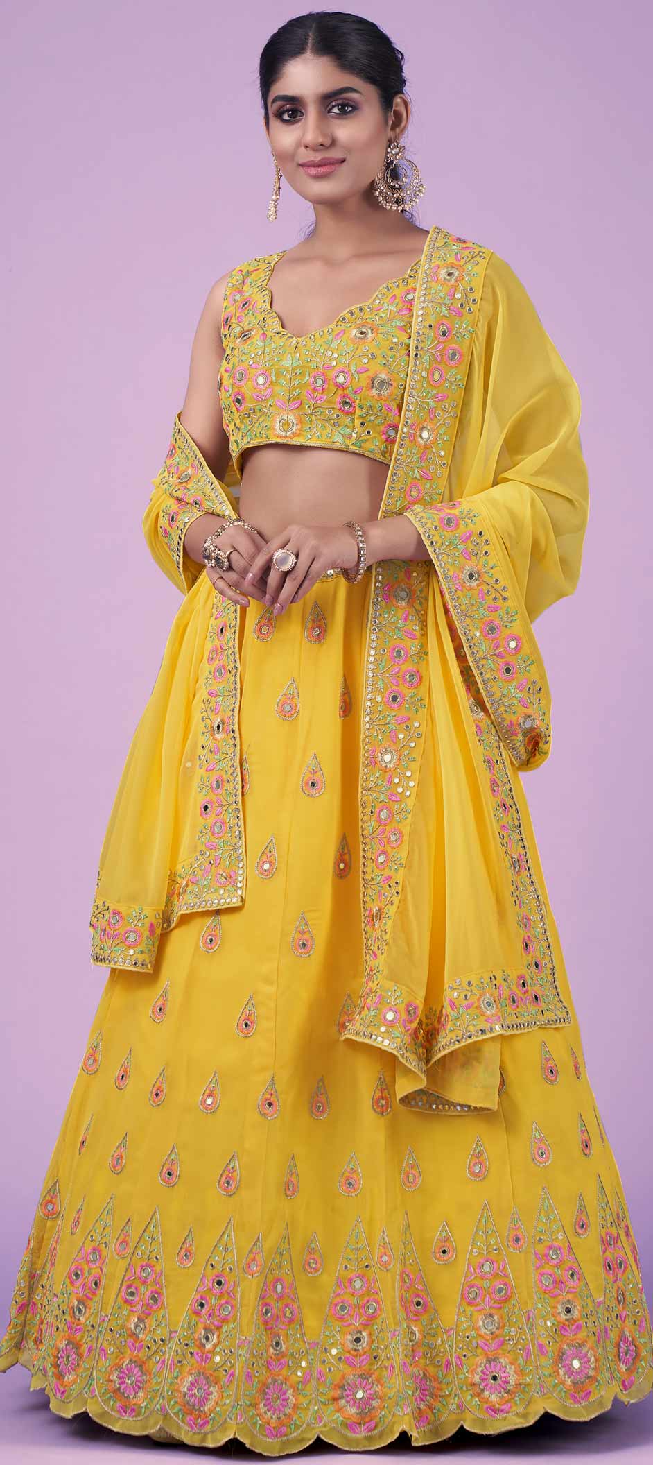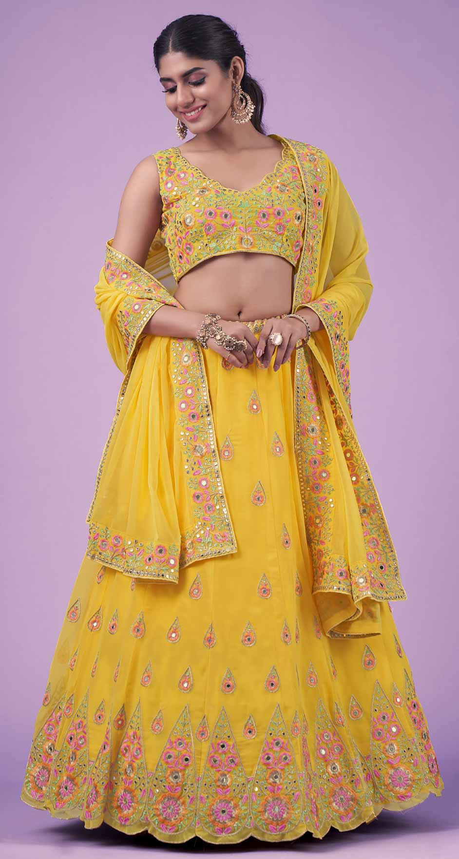 Yellow color Lehenga in Georgette fabric with Mirror, Thread, Zari work