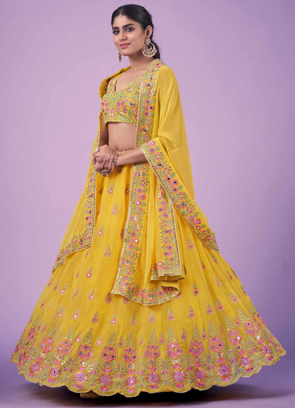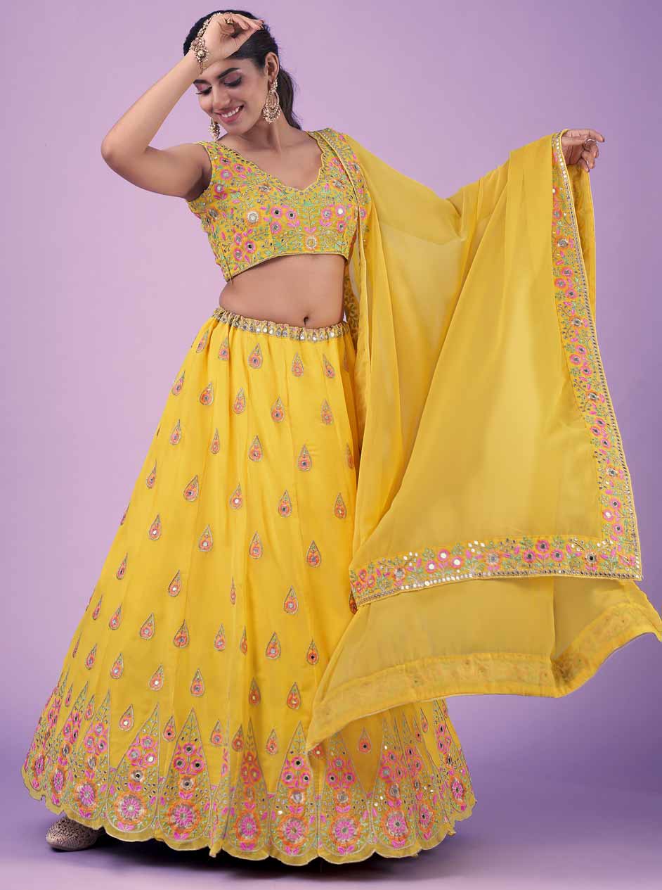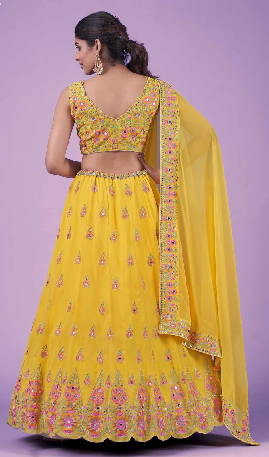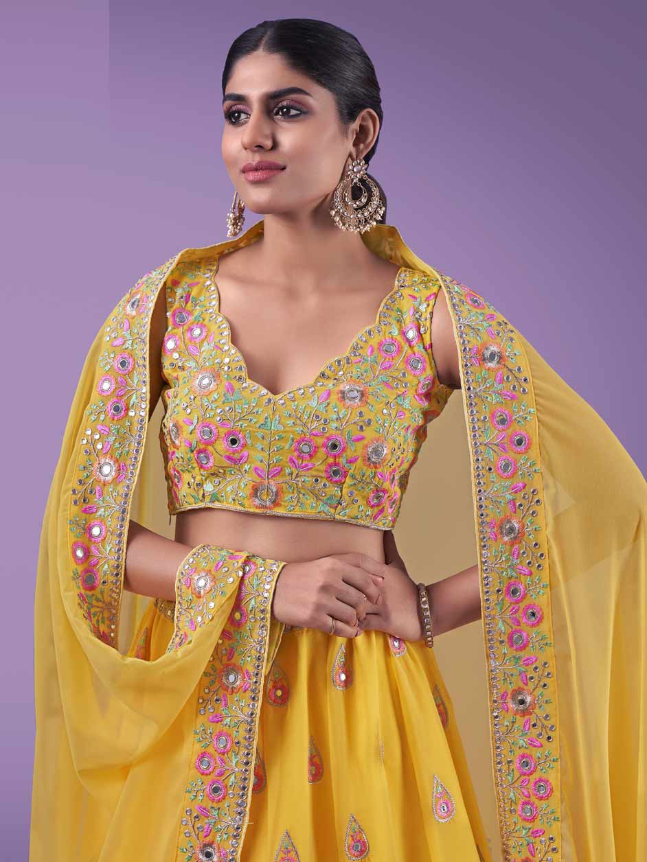 Yellow color Lehenga in Georgette fabric with Mirror, Thread, Zari work