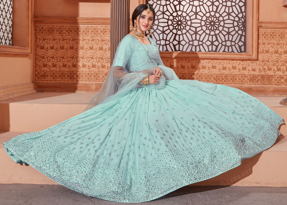 Blue color Lehenga in Georgette fabric with Embroidered, Resham, Sequence, Thread work