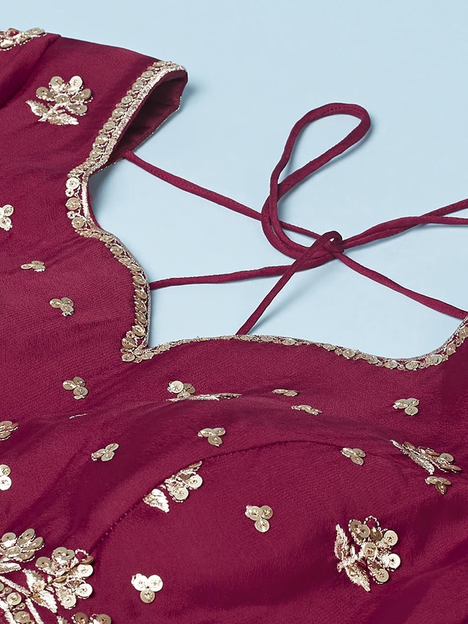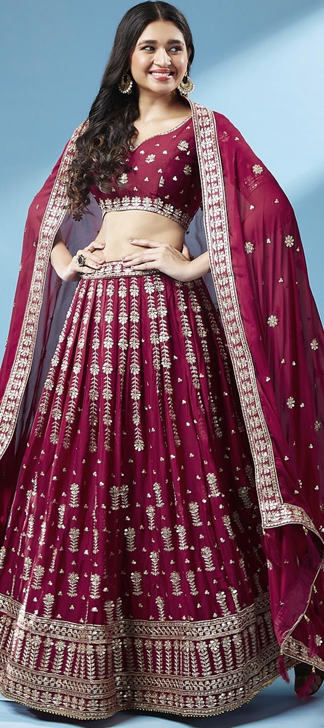 Red and Maroon color Lehenga in Georgette fabric with Embroidered work