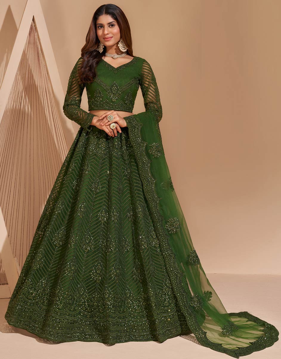 Green color Lehenga in Net fabric with Embroidered, Resham, Stone, Thread work