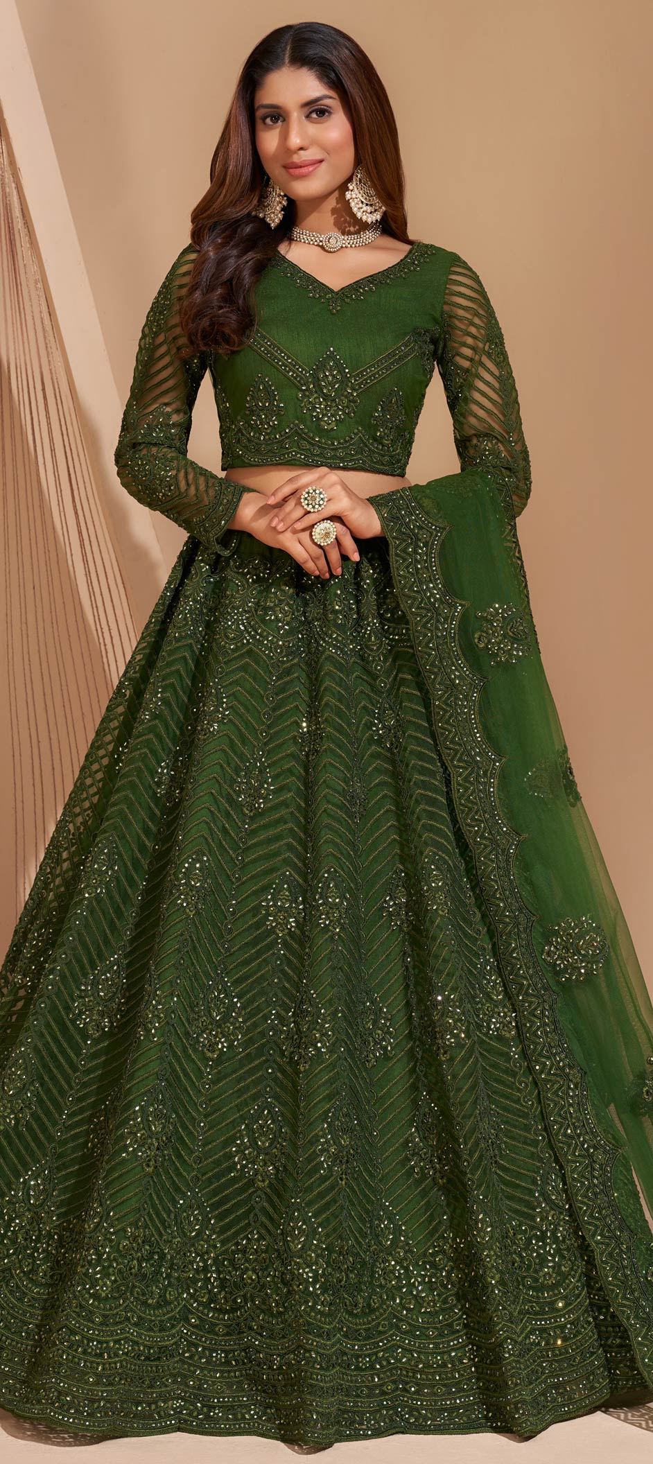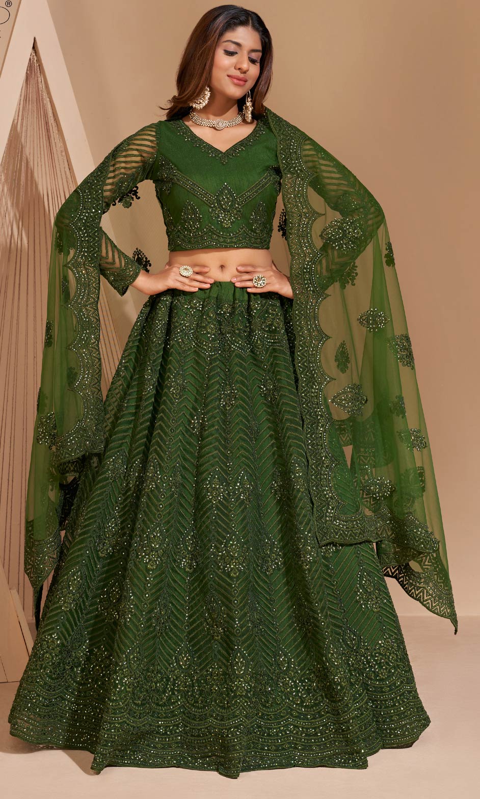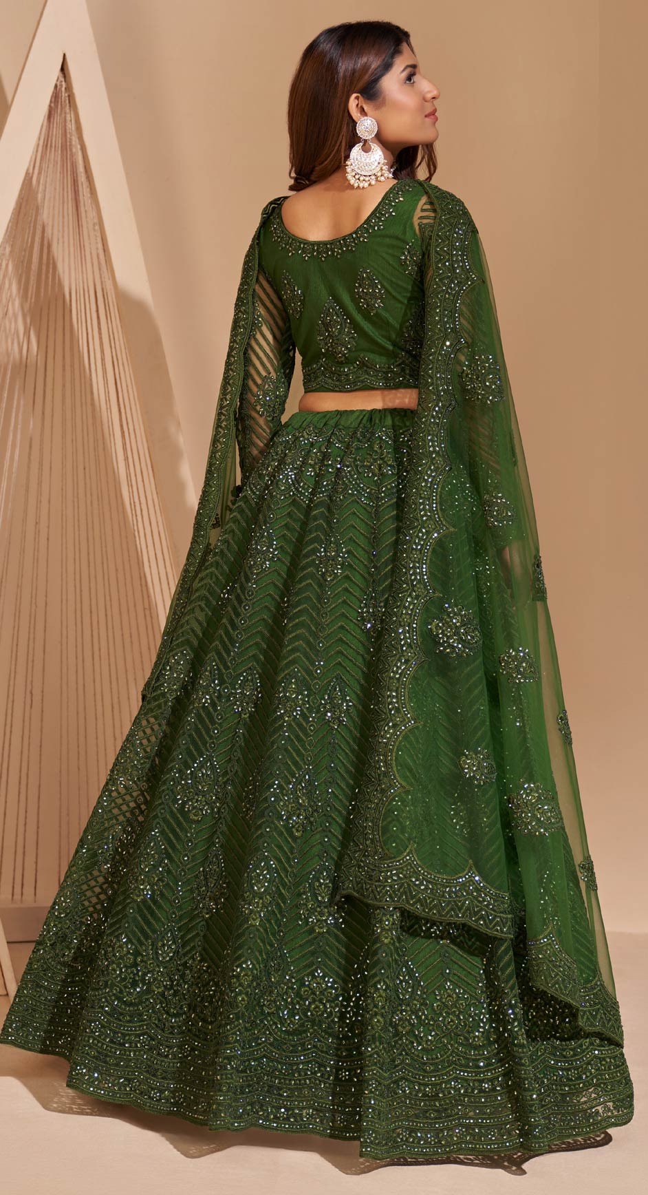 in Green with Resham work