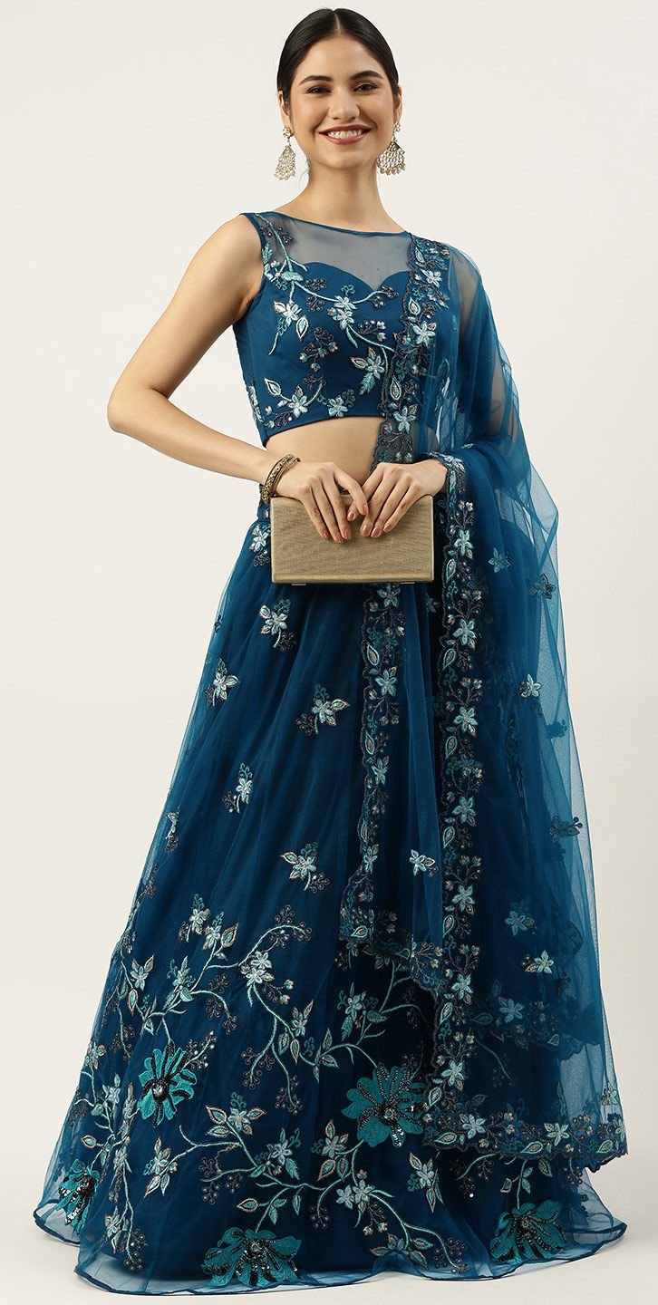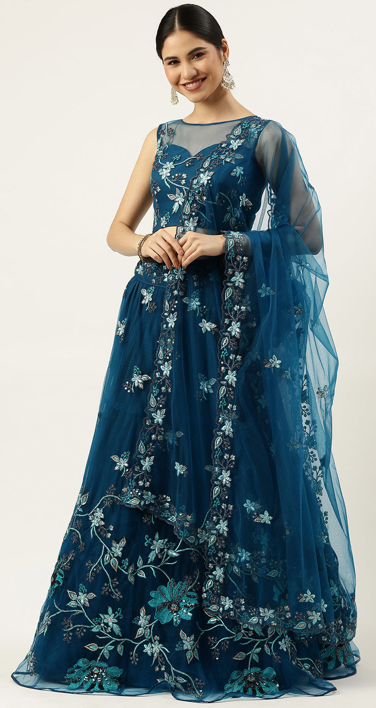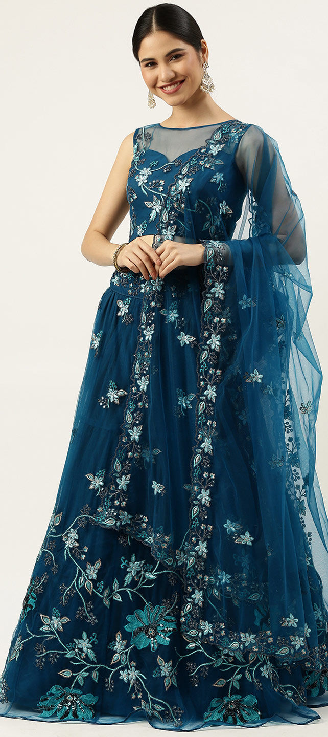 Blue color Lehenga in Net fabric with Embroidered, Sequence work