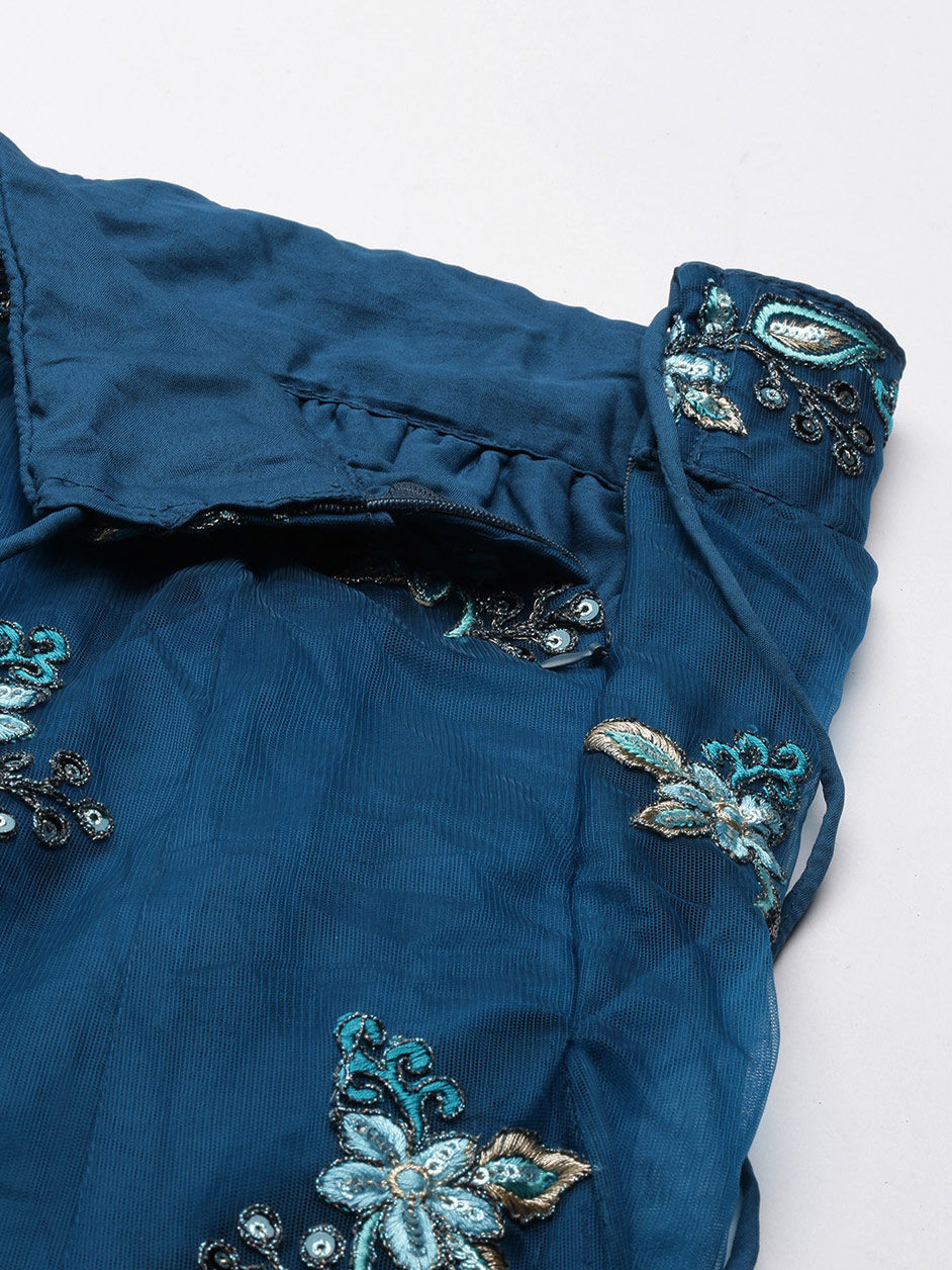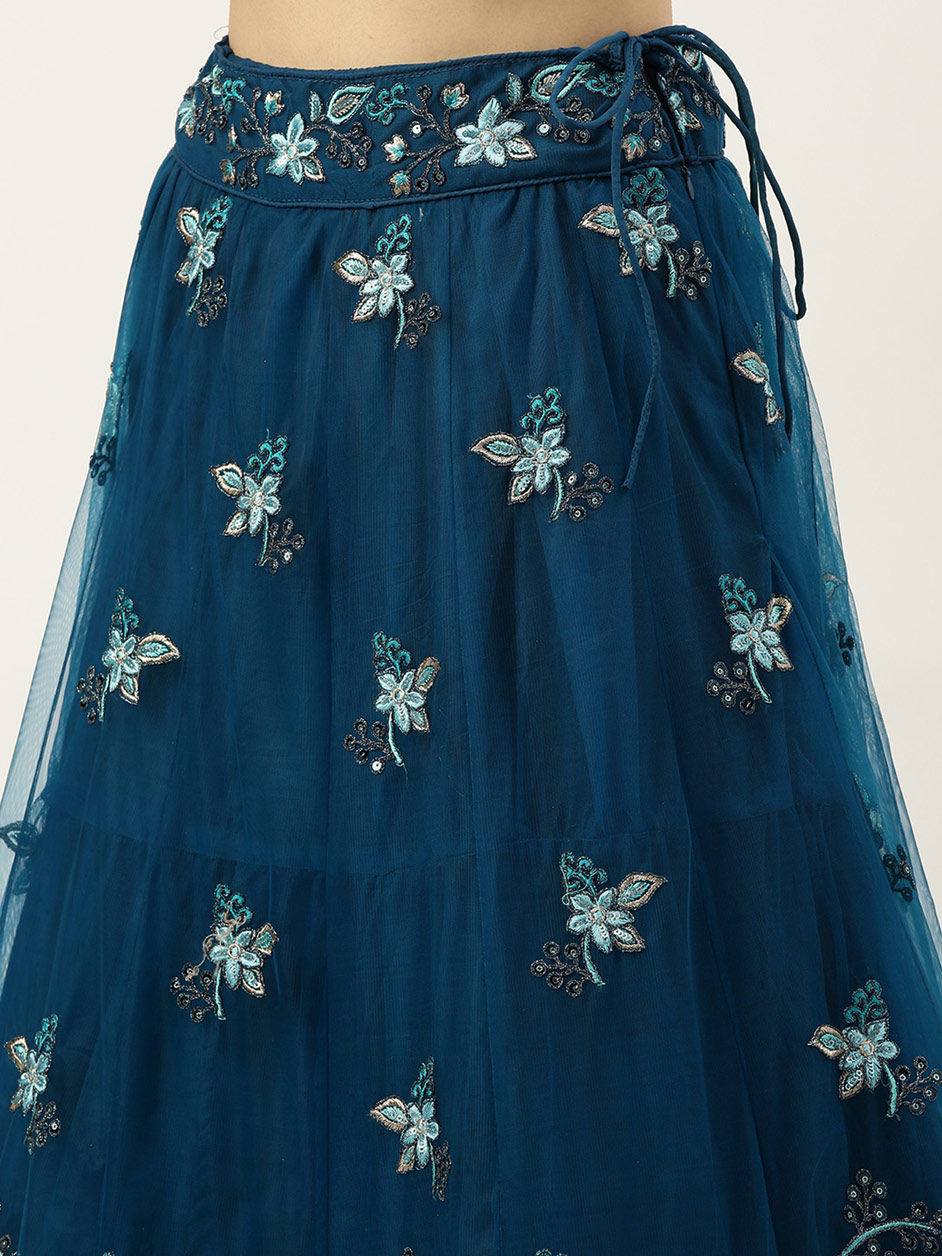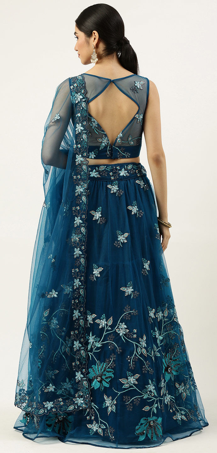 Blue color Lehenga in Net fabric with Embroidered, Sequence work