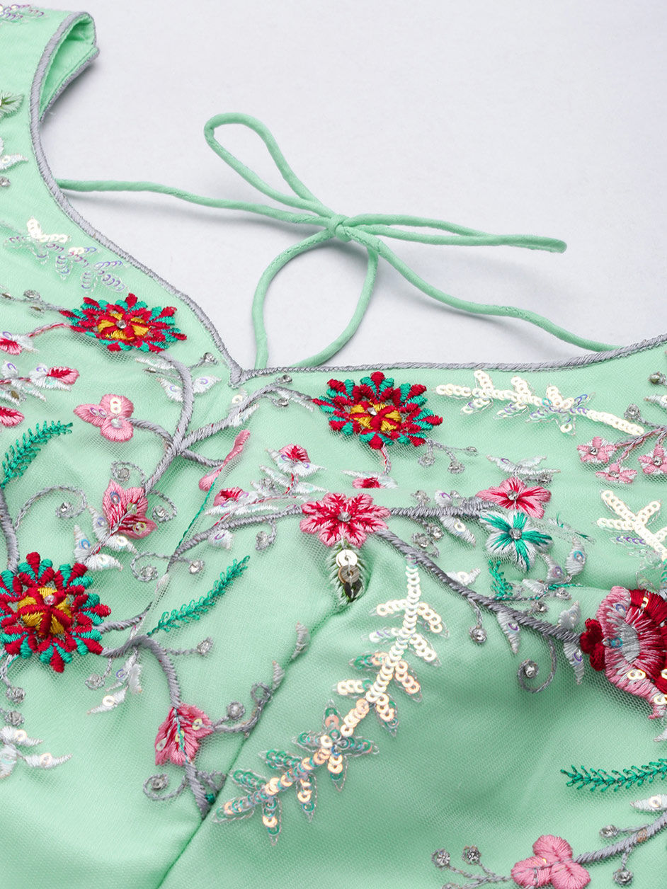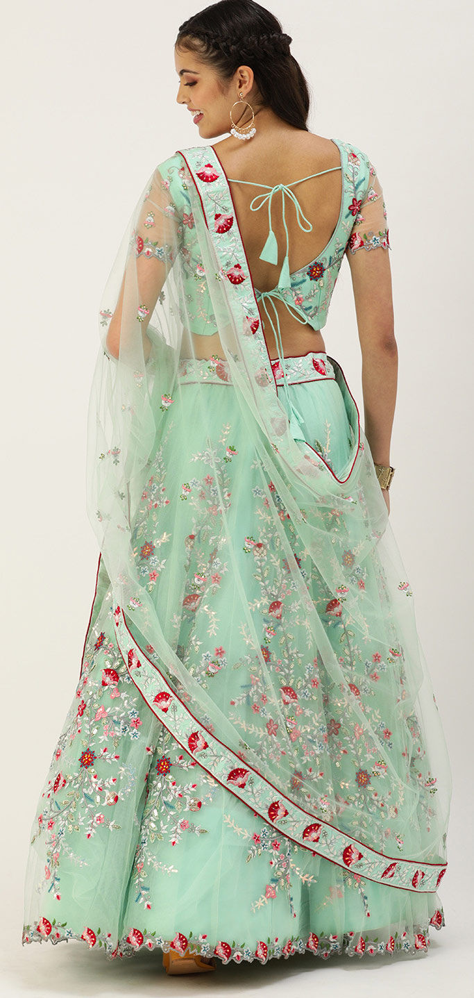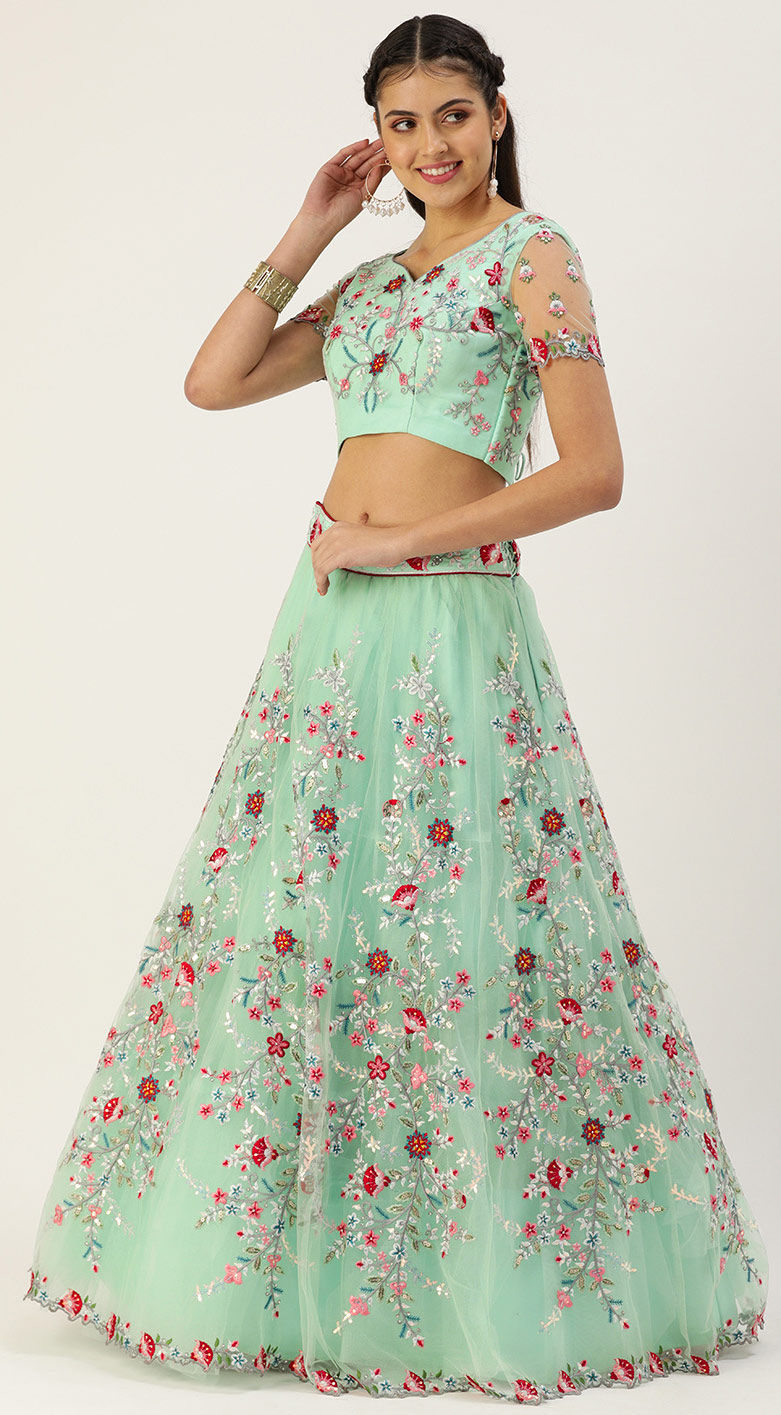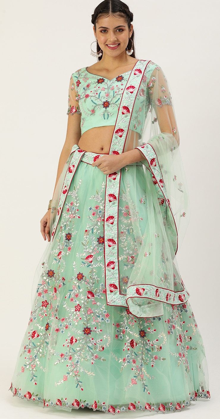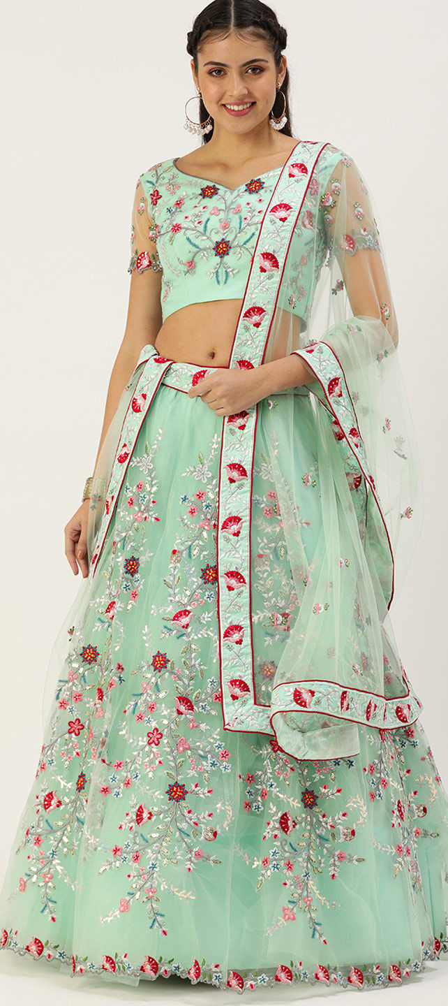 Green color Lehenga in Net fabric with Embroidered, Sequence work