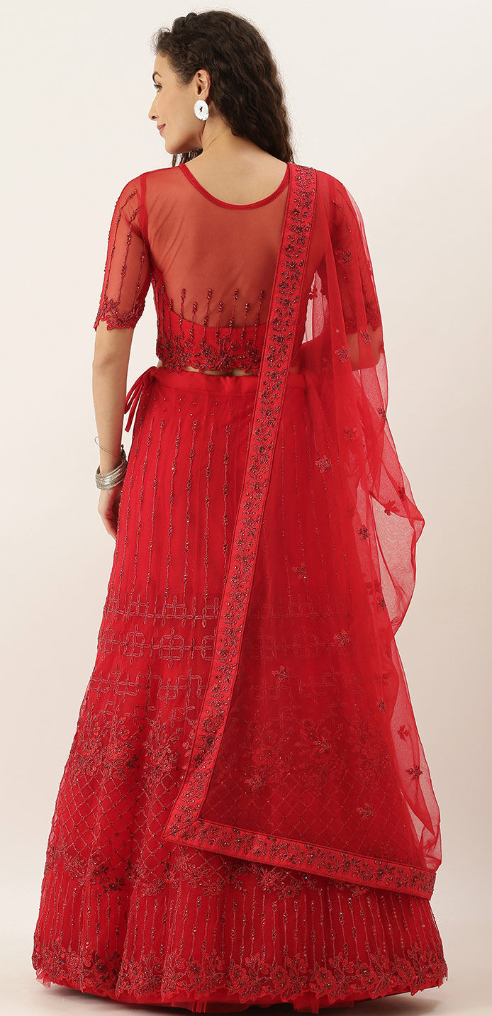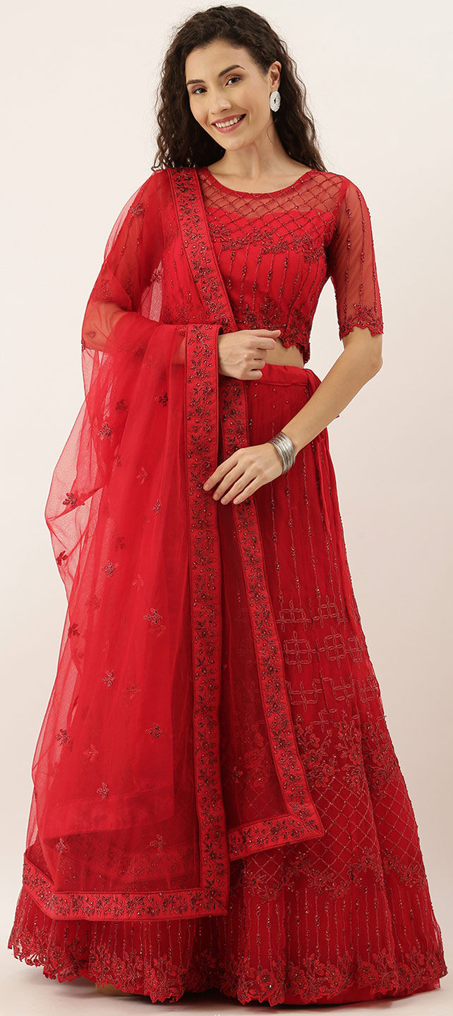 Red and Maroon color Lehenga in Net fabric with Embroidered, Stone work