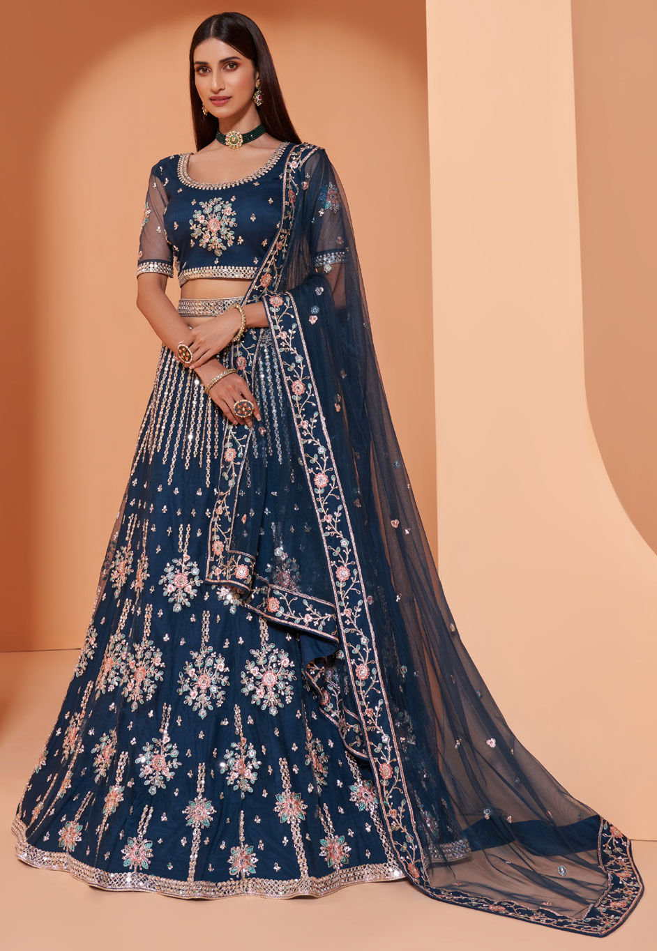 Blue color Lehenga in Net fabric with Embroidered, Sequence, Thread, Zircon work