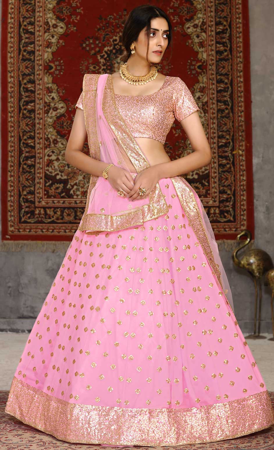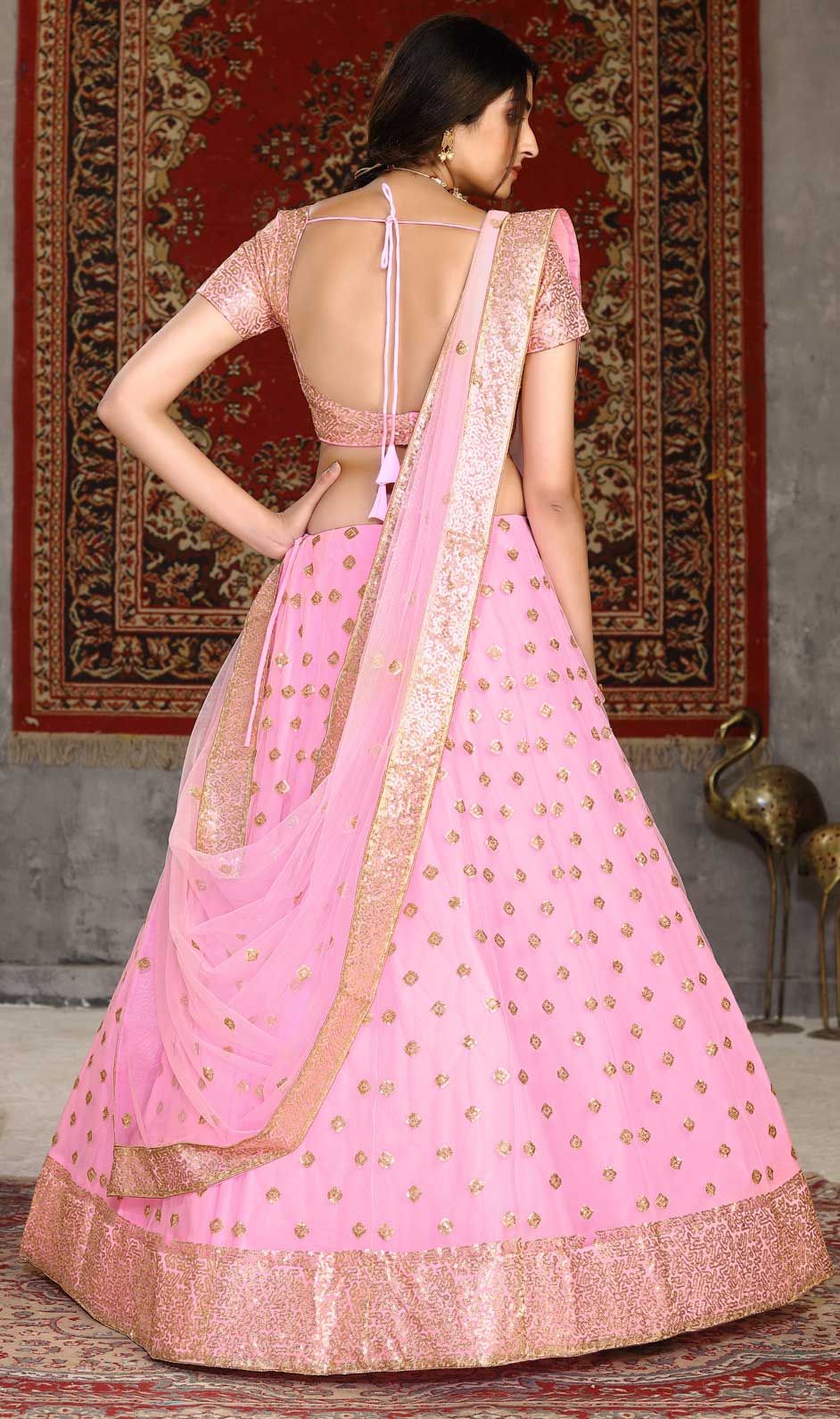 Pink and Majenta color Lehenga in Net fabric with Embroidered, Sequence work