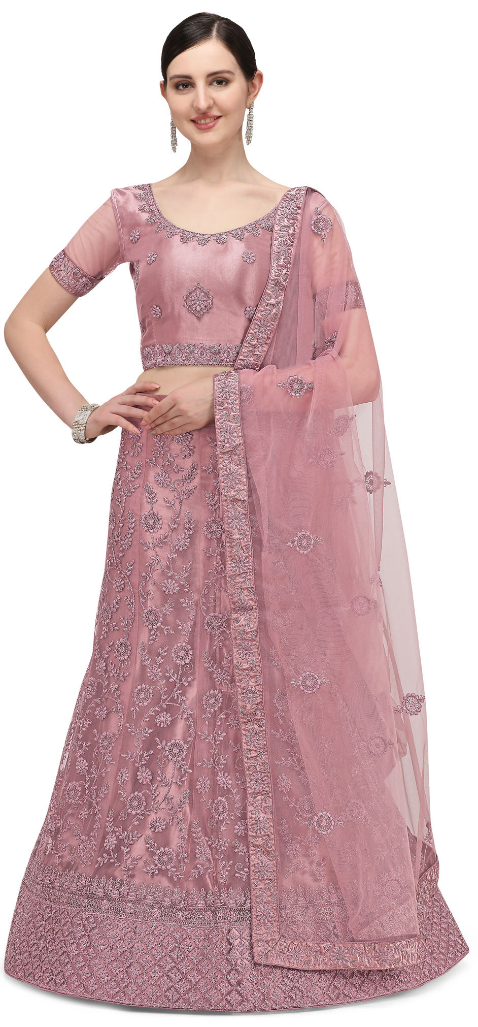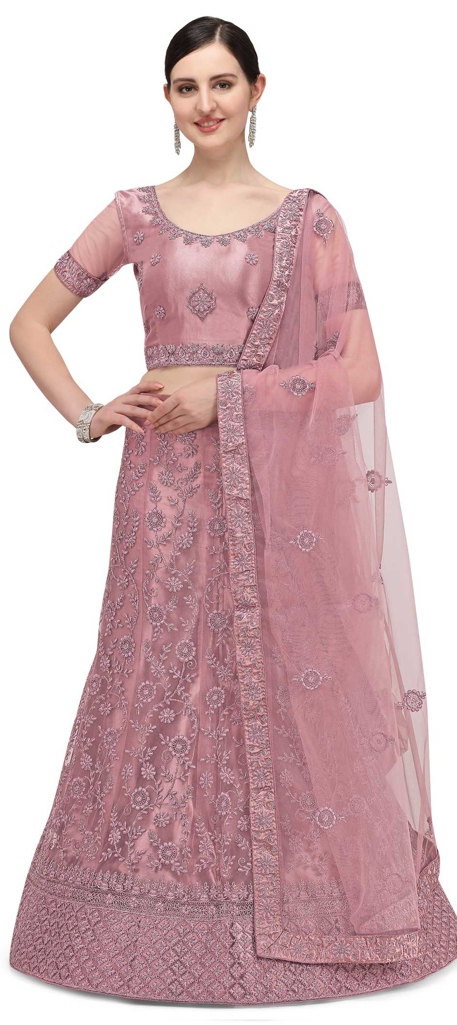 Purple and Violet color Lehenga in Net fabric with Embroidered, Thread work